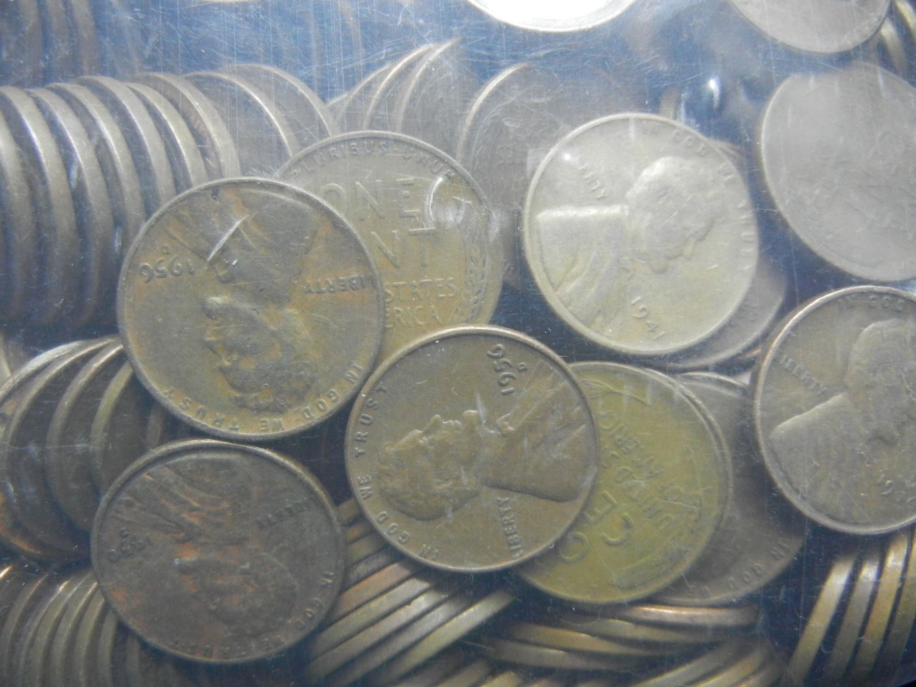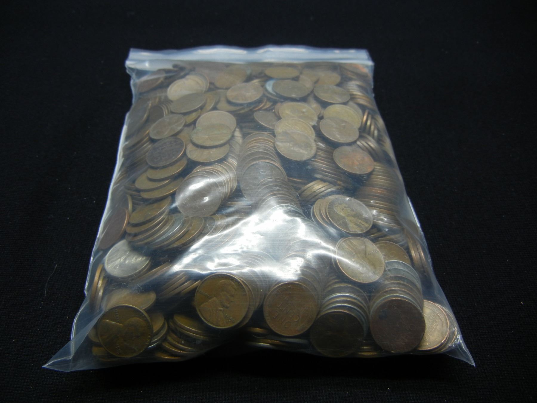 1000 Wheat Cents in a Bag Many Steel Cents Noted
