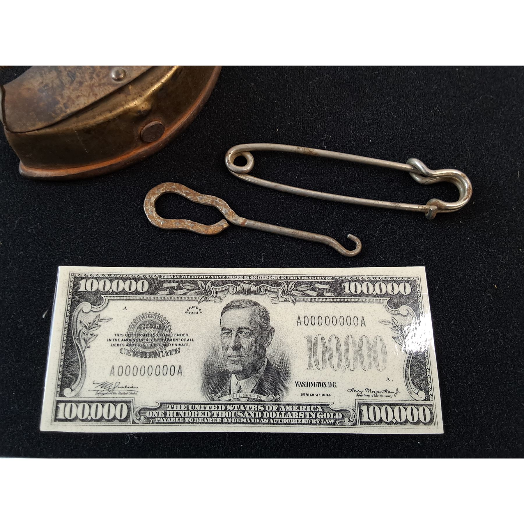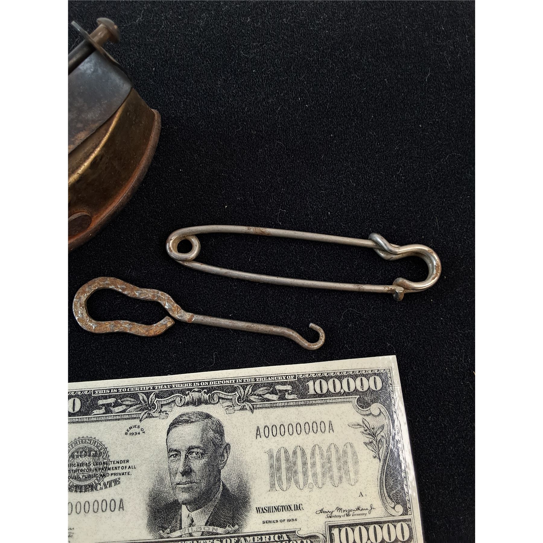 $100000 Souvenir Banknote , Safety Pin, Button Hook, Miniature Iron