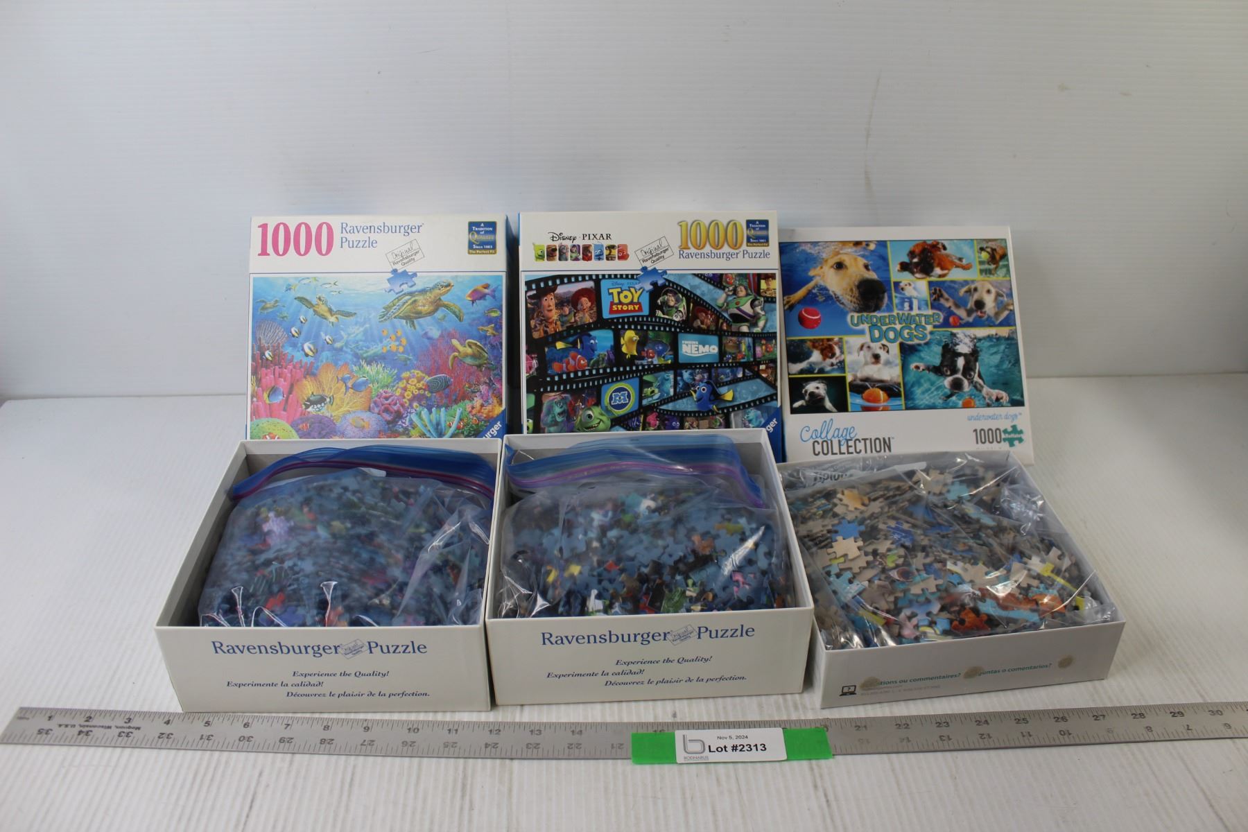 1000pc Underwater Puzzle, 1000pc Disney Pixar Puzzle, 1000pc Underwater Dogs Puzzle - All As Is Approx 20" x 27"