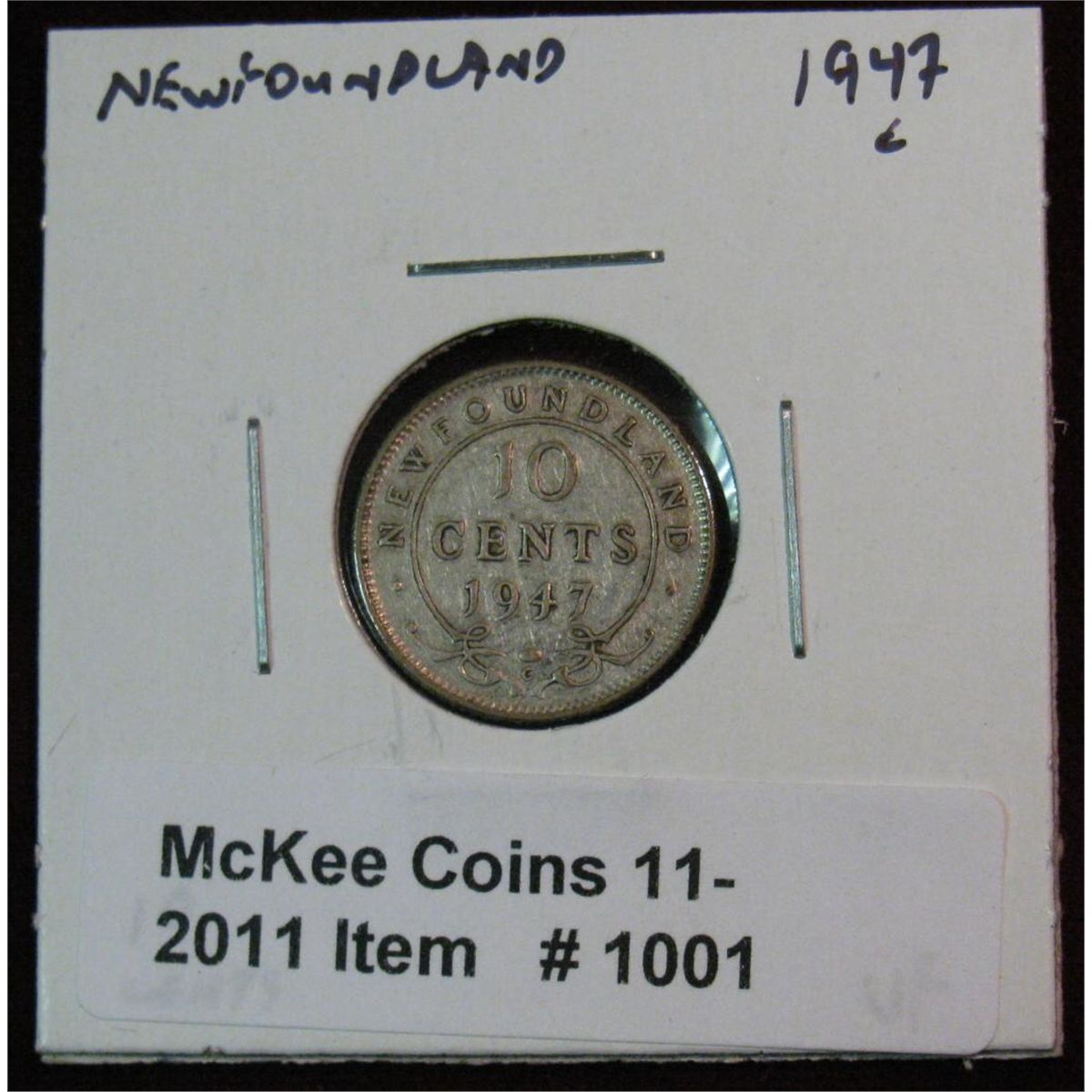1001. 1947c New Foundland 10-Cents. VF Est. $22.00