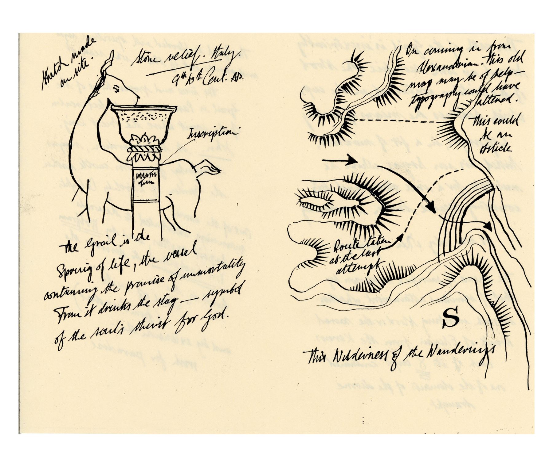 INDIANA JONES AND THE LAST CRUSADE (1989) - Pair of Production-Made "Maps" Grail Diary Pages - Two "maps" grail diary pages made for the production of Steven Spielberg's Indiana Jones and the Last Crusade. Indiana Jones (Harrison Ford) used his father's (Sean Connery) diary to find the elder Jones and, eventually, the Holy Grail itself.