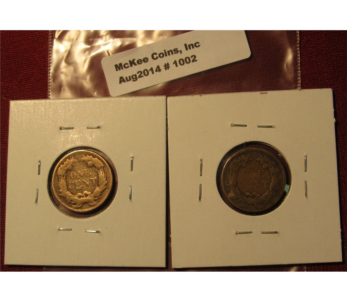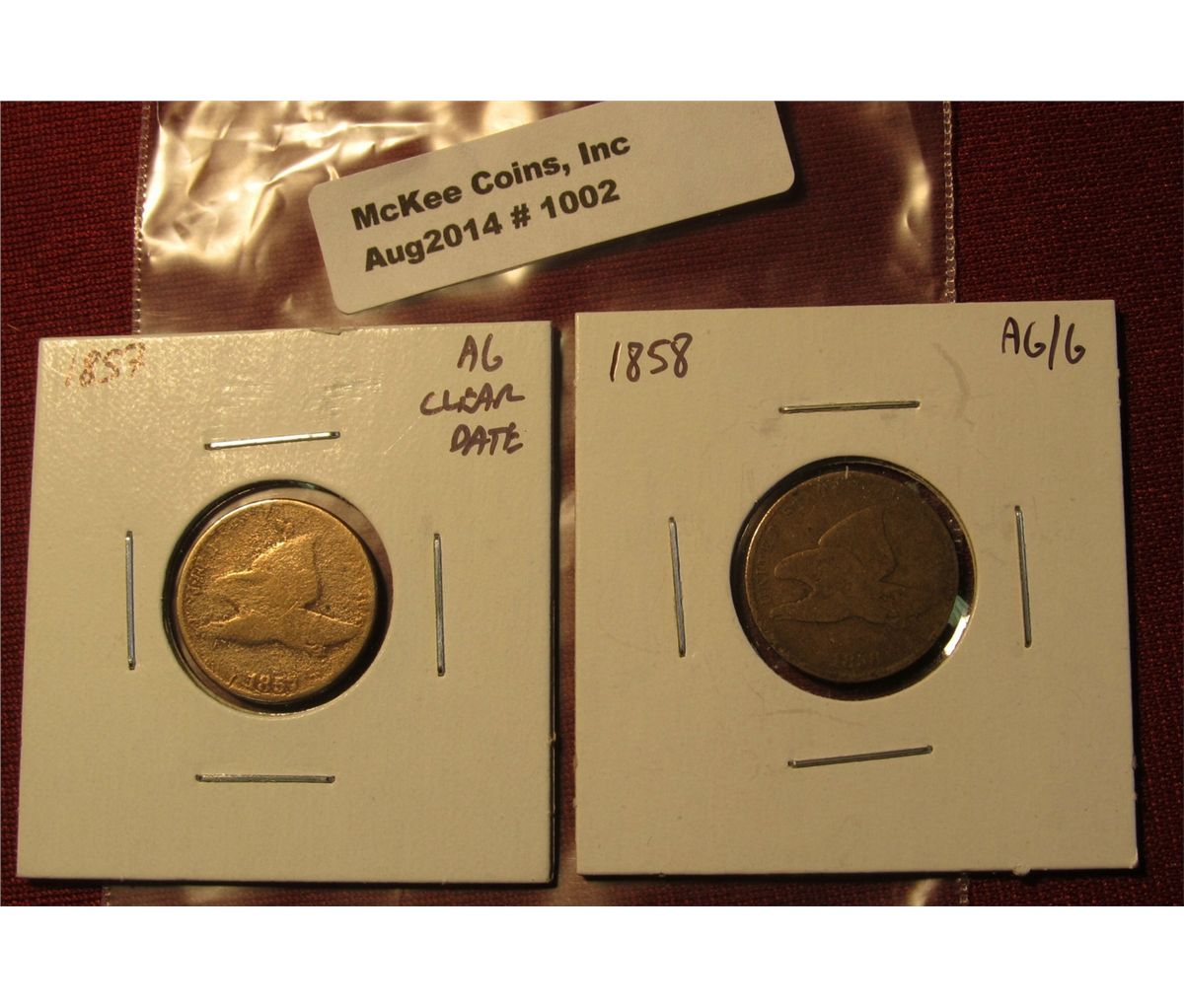 1002. 2 Flying Eagle Cents - 1857 & 1858, both AG with clear dates