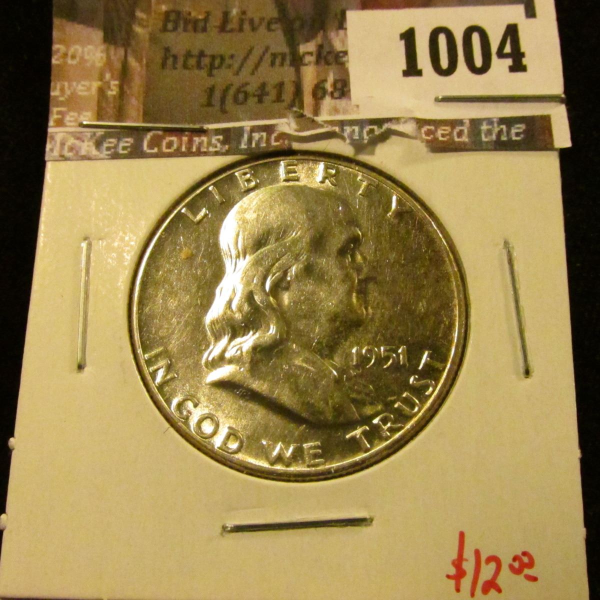 1004 . 1951 Franklin Half Dollar, AU, value $12