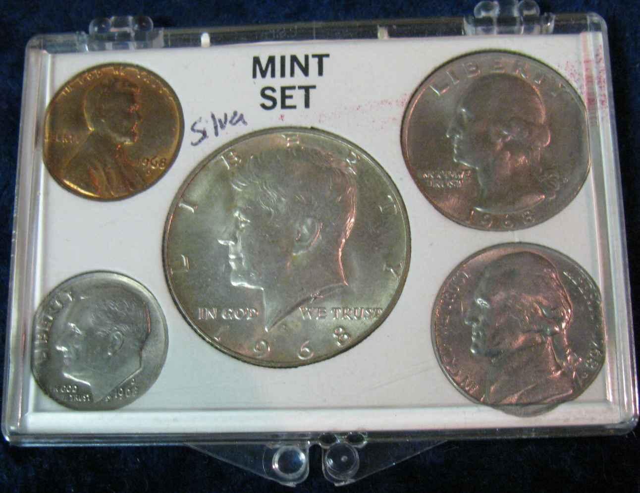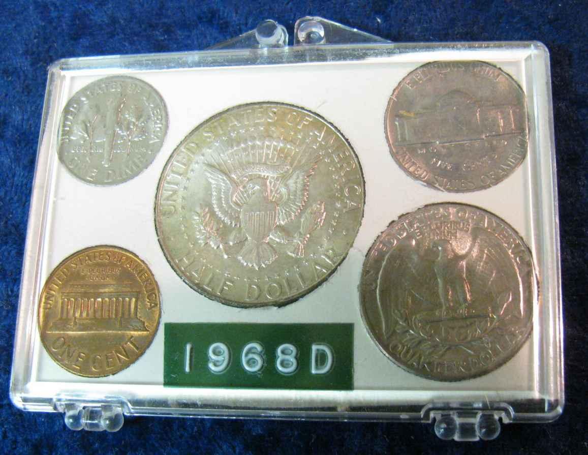 1004. 1968D US Uncirculated Coin Set in Snaptight Holder.
