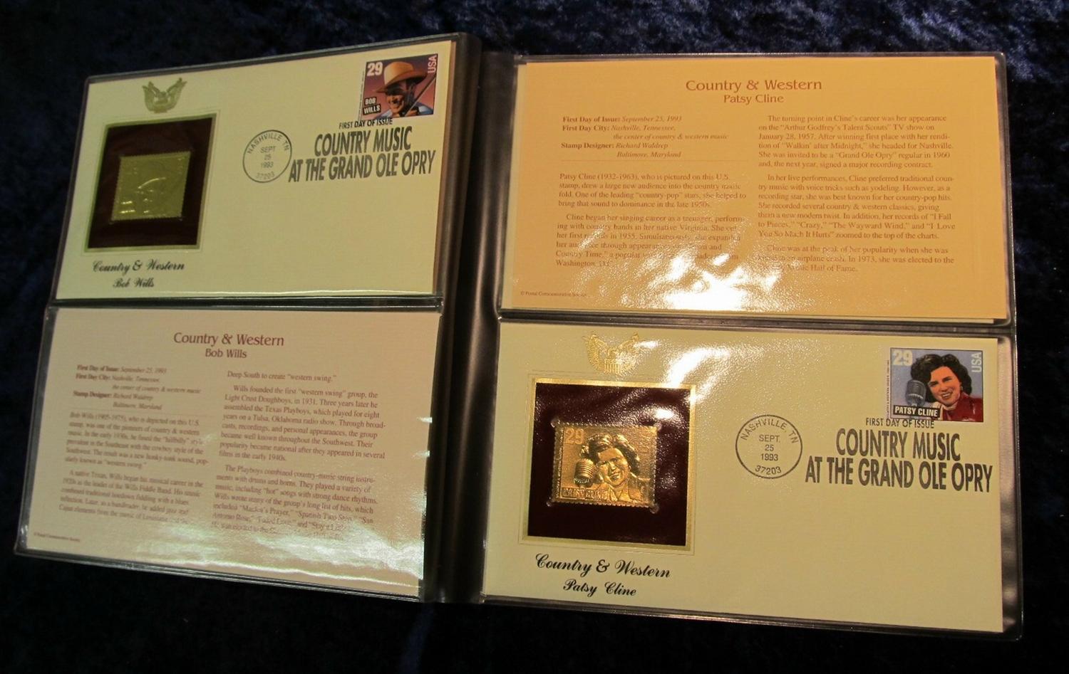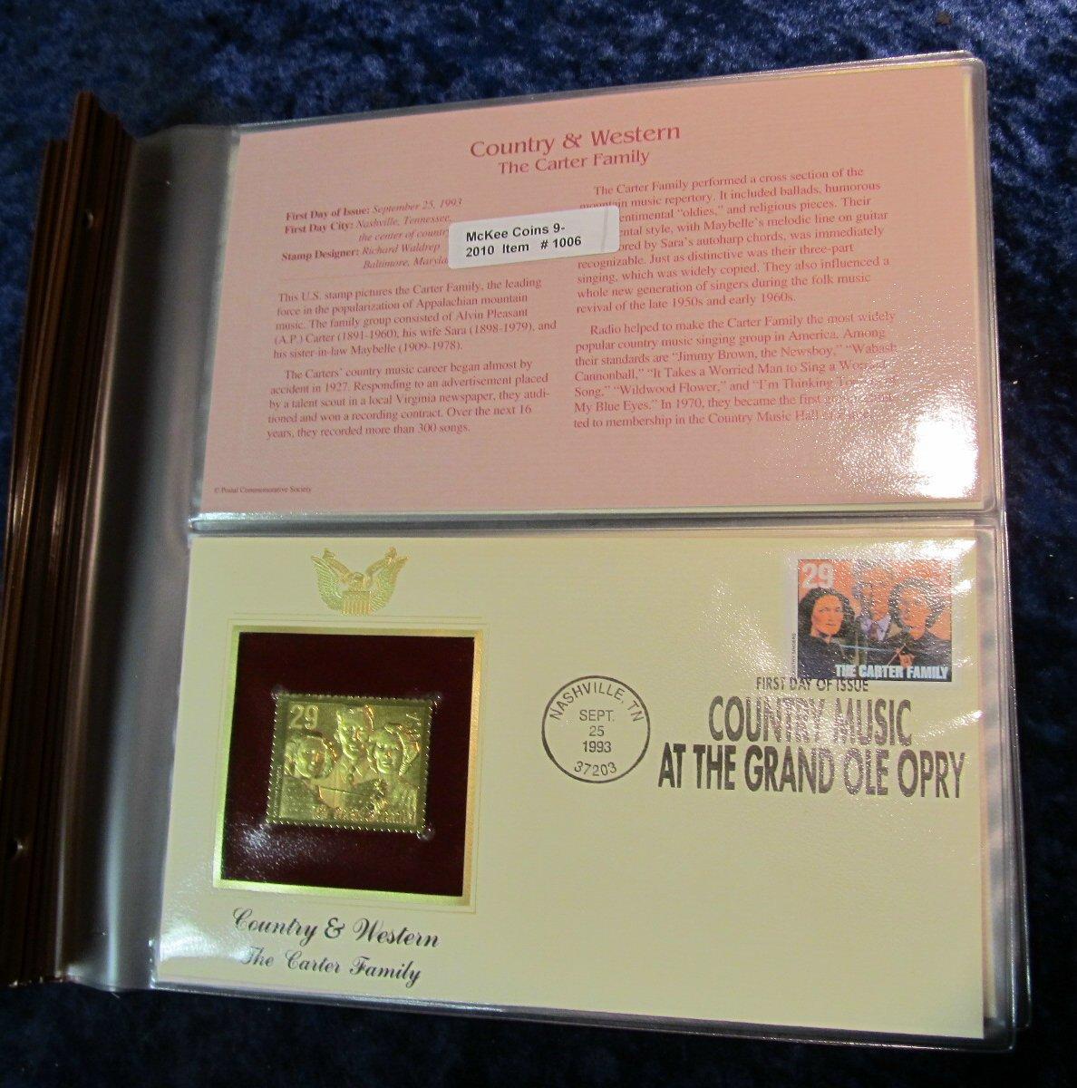 1006. (4) 22K Gold, Golden Replicas of US Stamps. Country Music.