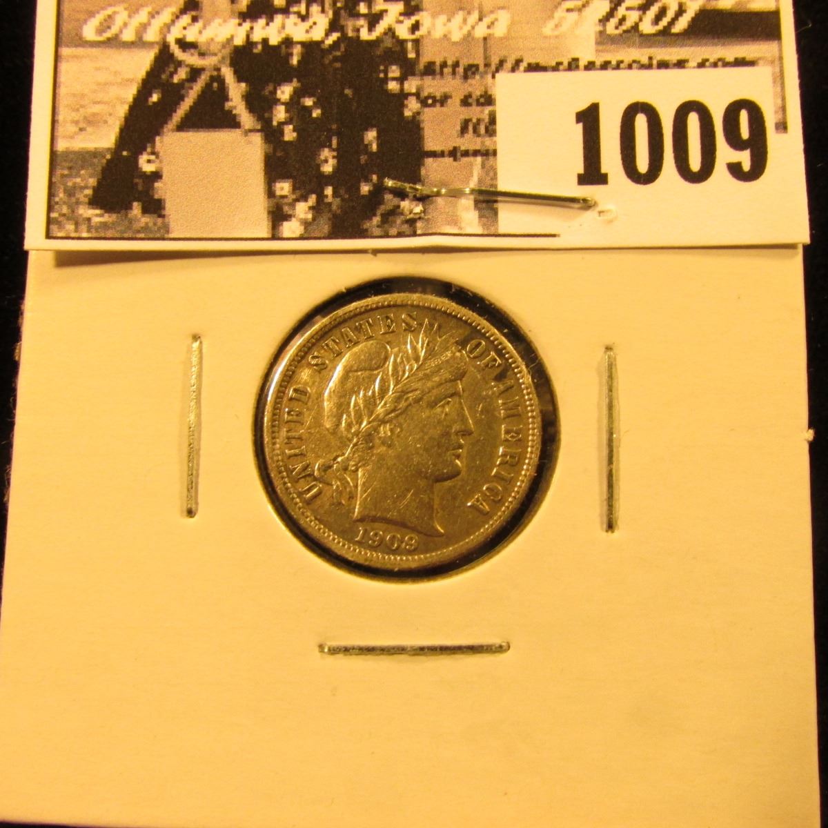 1009 . 1909 O Barber Dime, EF (tarnished).
