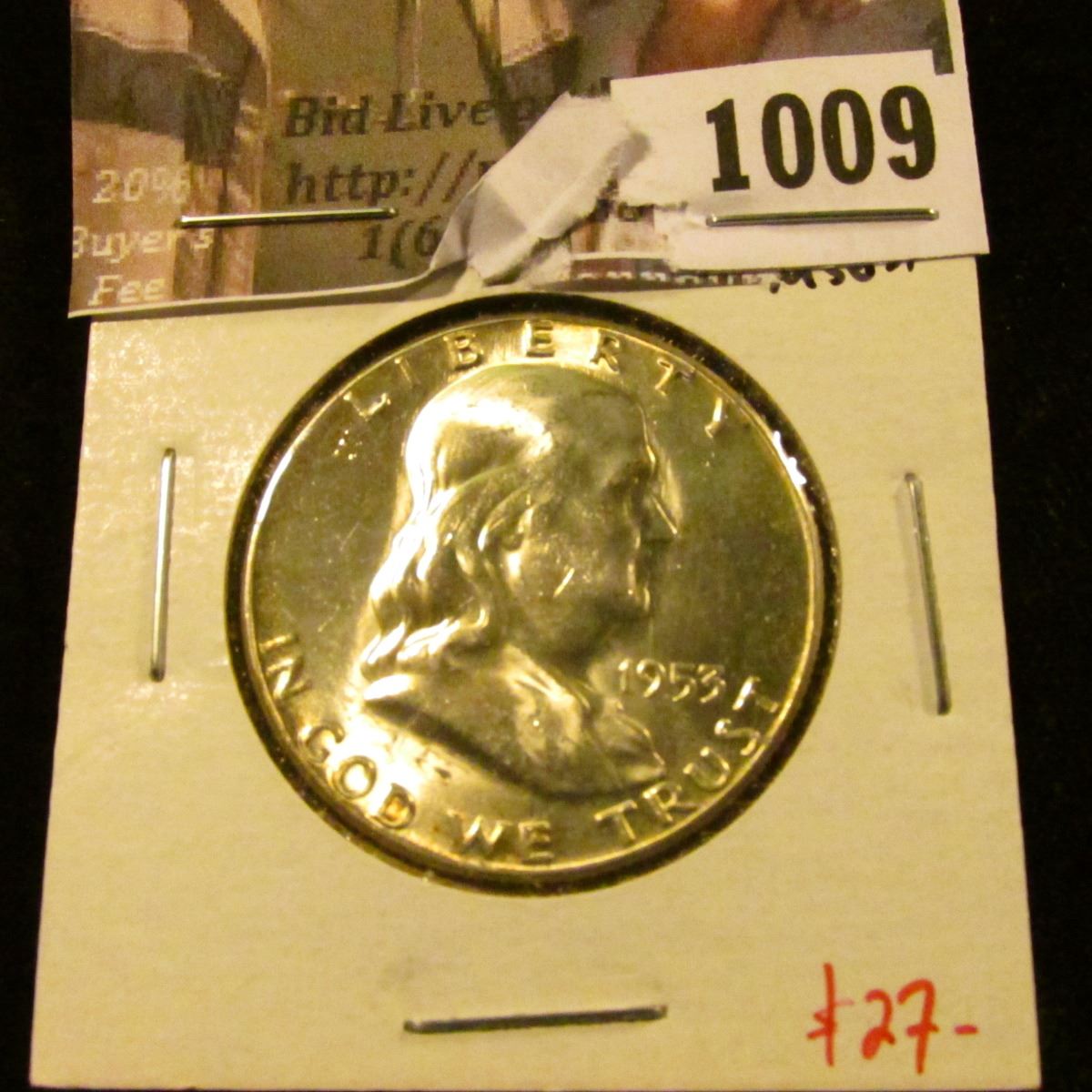 1009 . 1953 Franklin Half Dollar, BU MS63+, value $27
