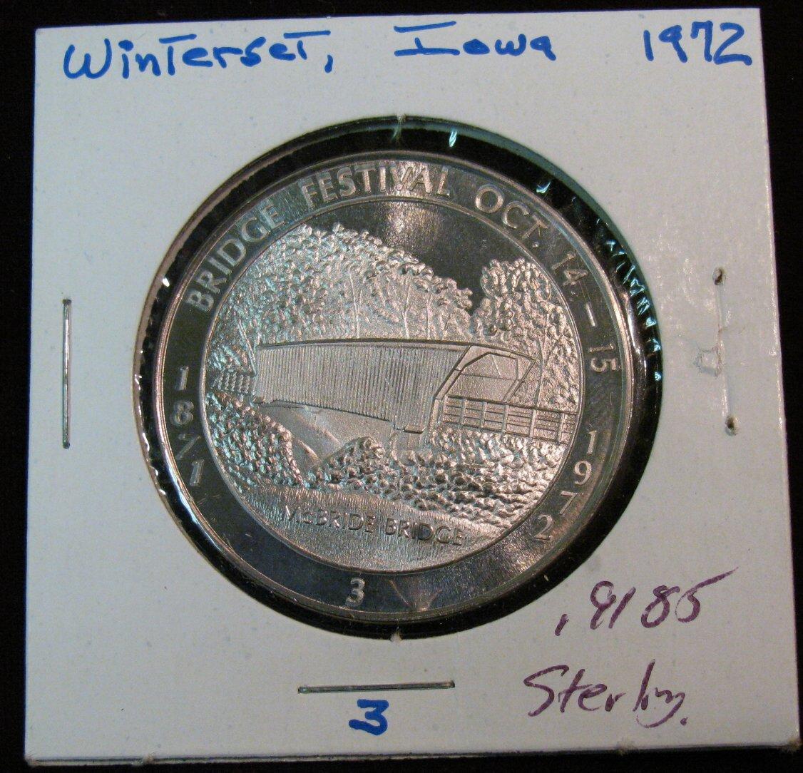 1009. 1972 Winterset, Ia. Proof Sterling Silver Medal. Weighs .9185 ozs. Rare serial no. 73.