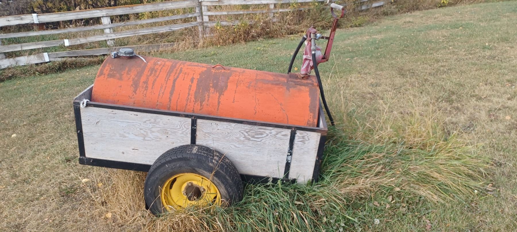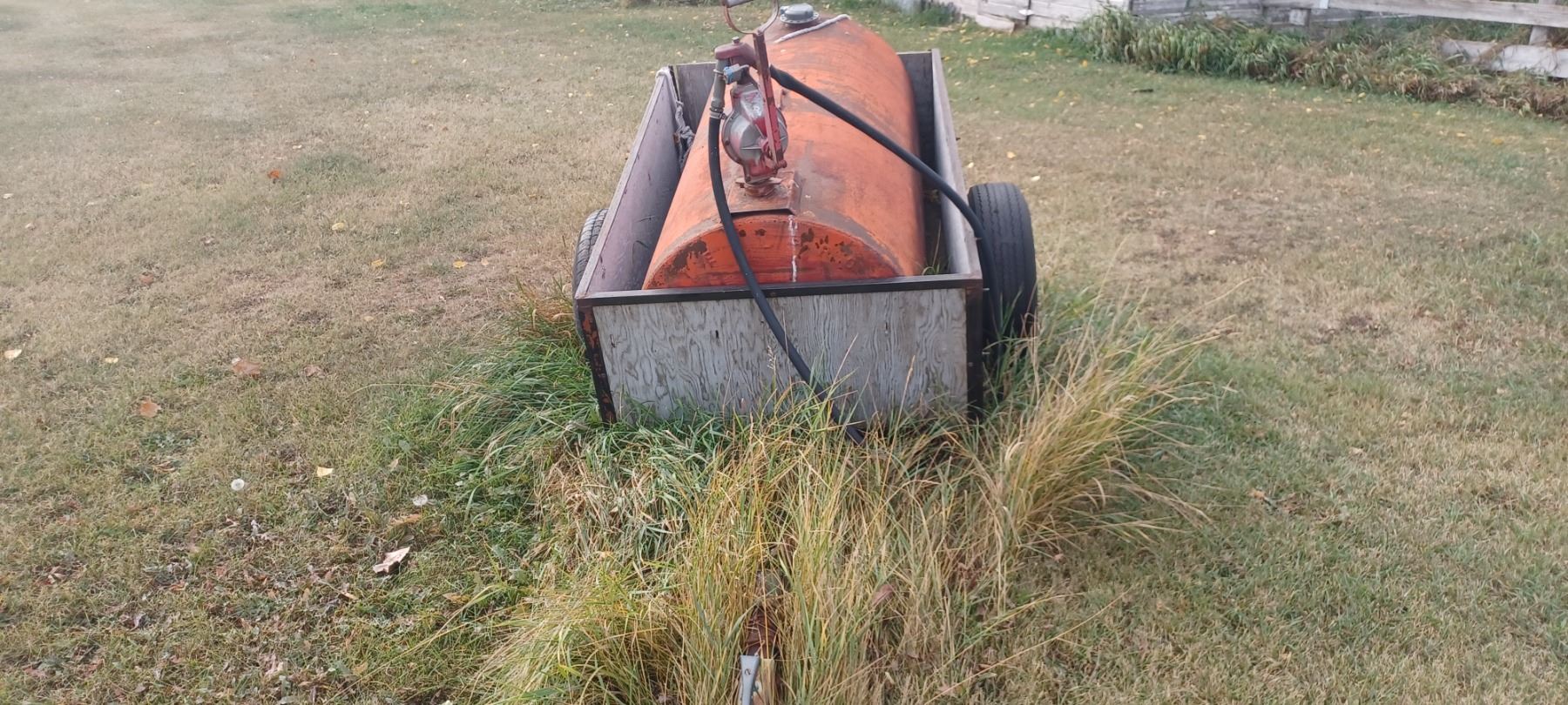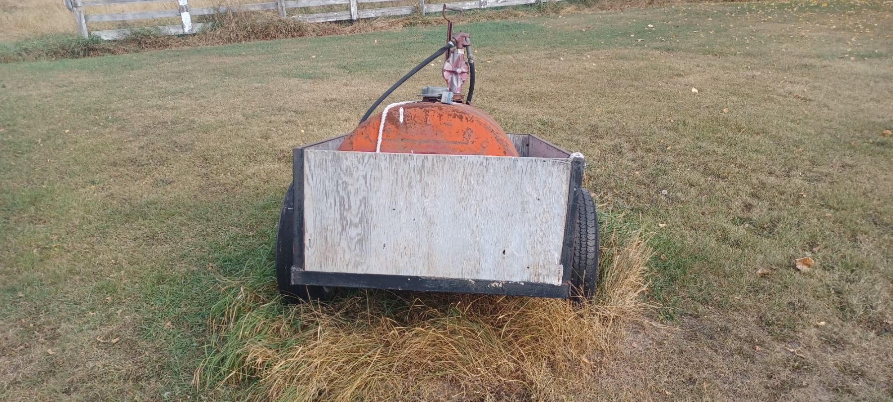 100GAL APPROX ON TRAILER WITH REGULAR HITCH ATTACHEMENT, ONE TIRE NEEDS REPLACED
