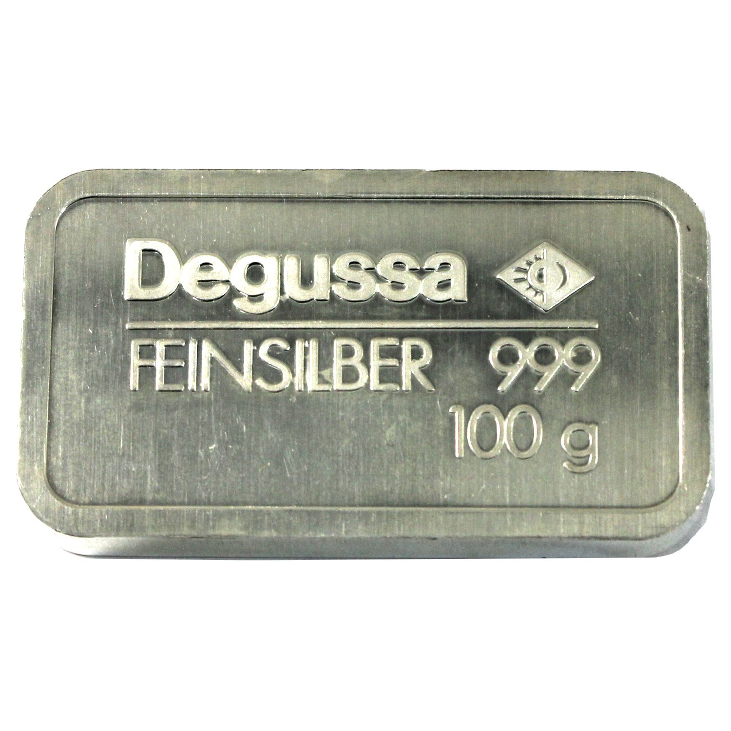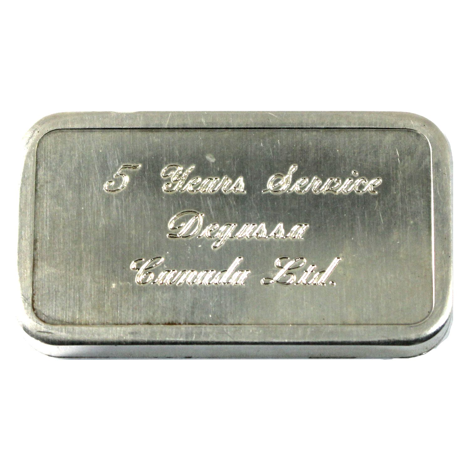 100g Degussa Feinsilber .999 Fine Silver Bar Engraved "5 Years Service Degussa Canada Ltd." on Back (Tax Exempt)