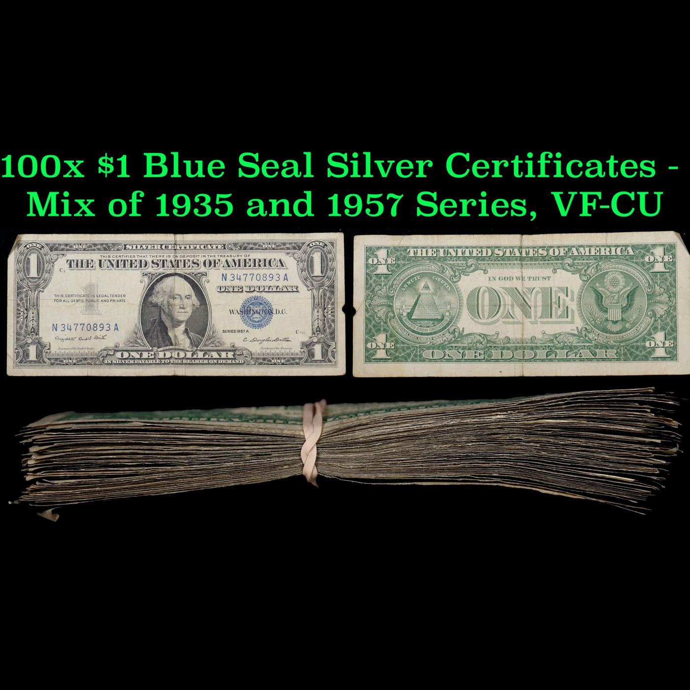 100x $1 Blue Seal Silver Certificates - Mix of 1935 and 1957 Series, VF-CU