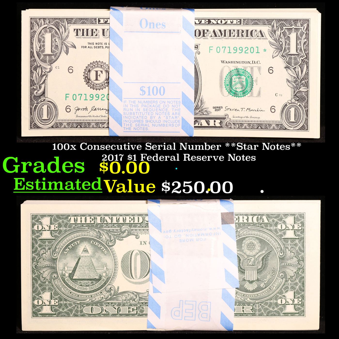 100x Consecutive Serial Number **Star Notes** 2017 $1 Federal Reserve Notes Grades.