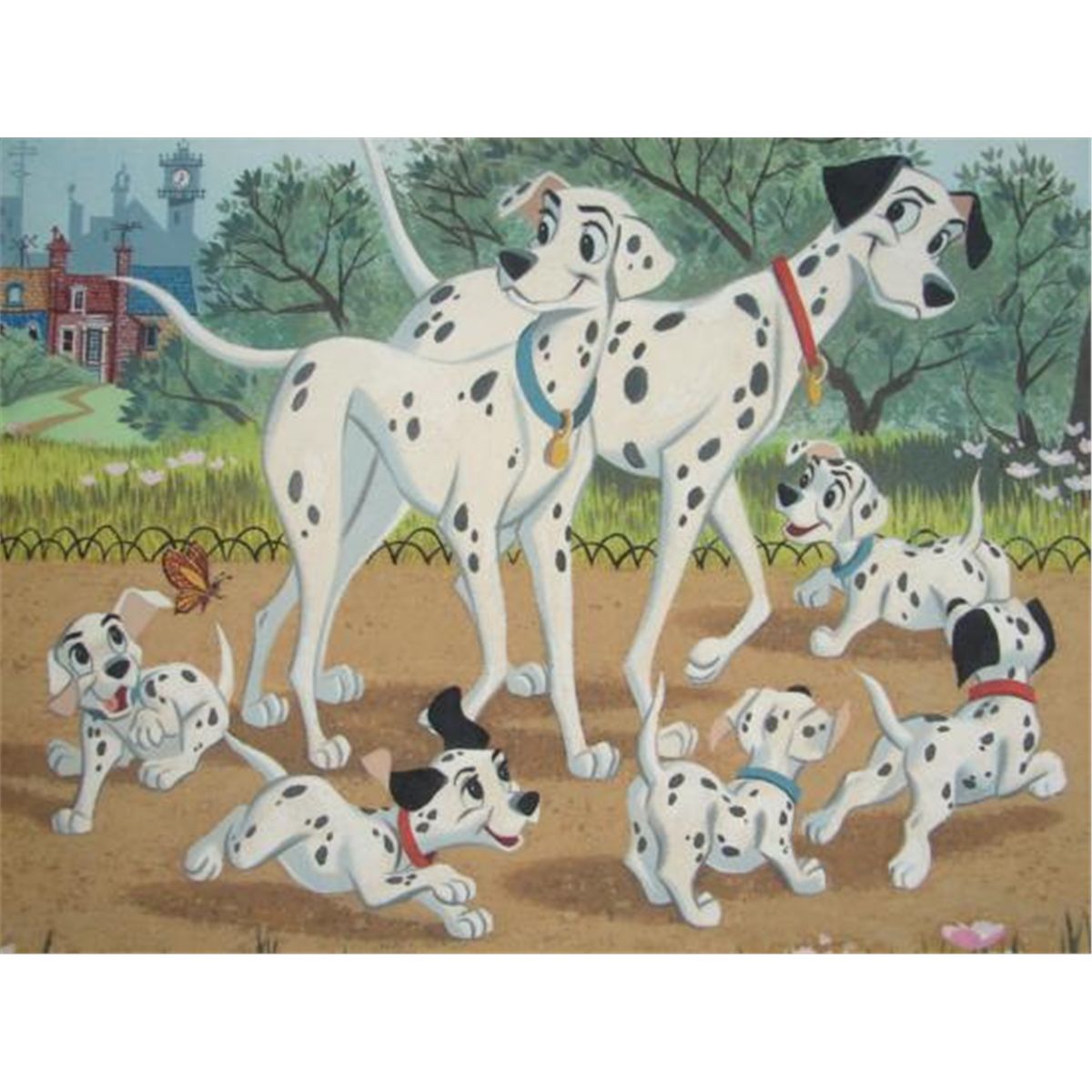 Featured here is a signed and numbered Giclée Print as reproduced from a 1961 cover illustration created by artist Norm McGary for Western Publishing's Big Golden Book Disney's 101 Dalmatians. In this image Pong and Perdita stroll through the park with their adorable pups! * * * * Title: Family Outing * Medium: Giclée Print * Published by: Walt Disney Art Classics * Date of Publication: 2000 * Image Size: 15 inches times 22 inches * Page Size: 20 inches times 26 inches * Embossed by Disney Seal, LR * Numbered from a Limited Edition of 300, LR * Signed by Ken Shue, Creative Director for Disney Publishing Worldwide, LL * Excellent Condition * Publisher's Certificate of Authenticity Included * * * * * Here's what the Certificate of Authenticity has to say: * * * Walt Disney Art classics, the publisher of this print, has created this edition using the fine art printing process of color reproduction known as giclée. In this process, American Atelier took a computer-based digital file that was created using the original art and printed it with absolute fidelity to the original by spraying millions of pixel - sized drops of ink per second onto premium-quality, acid free canvas with an enhanced printer, specially modified for fine art reproduction. As a finishing touch, Ken Shue, Creative Director for Disney Publishing Worldwide, has personally authenticated each piece in this edition with his signature. Mr. Shue is not the artist of the piece. * * * * This Limited Edition Giclée would look adorable matted and framed!!