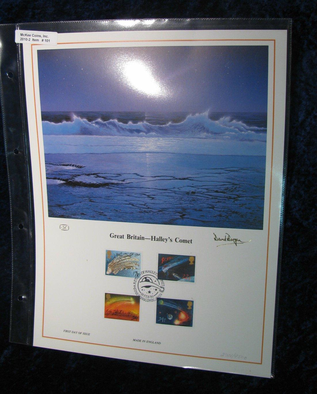101. Great Britain - Halley's Comet First Day of Issue Cover with illustration. Mint condition. In plastic. Signed and numbered limited edition of 9,500.