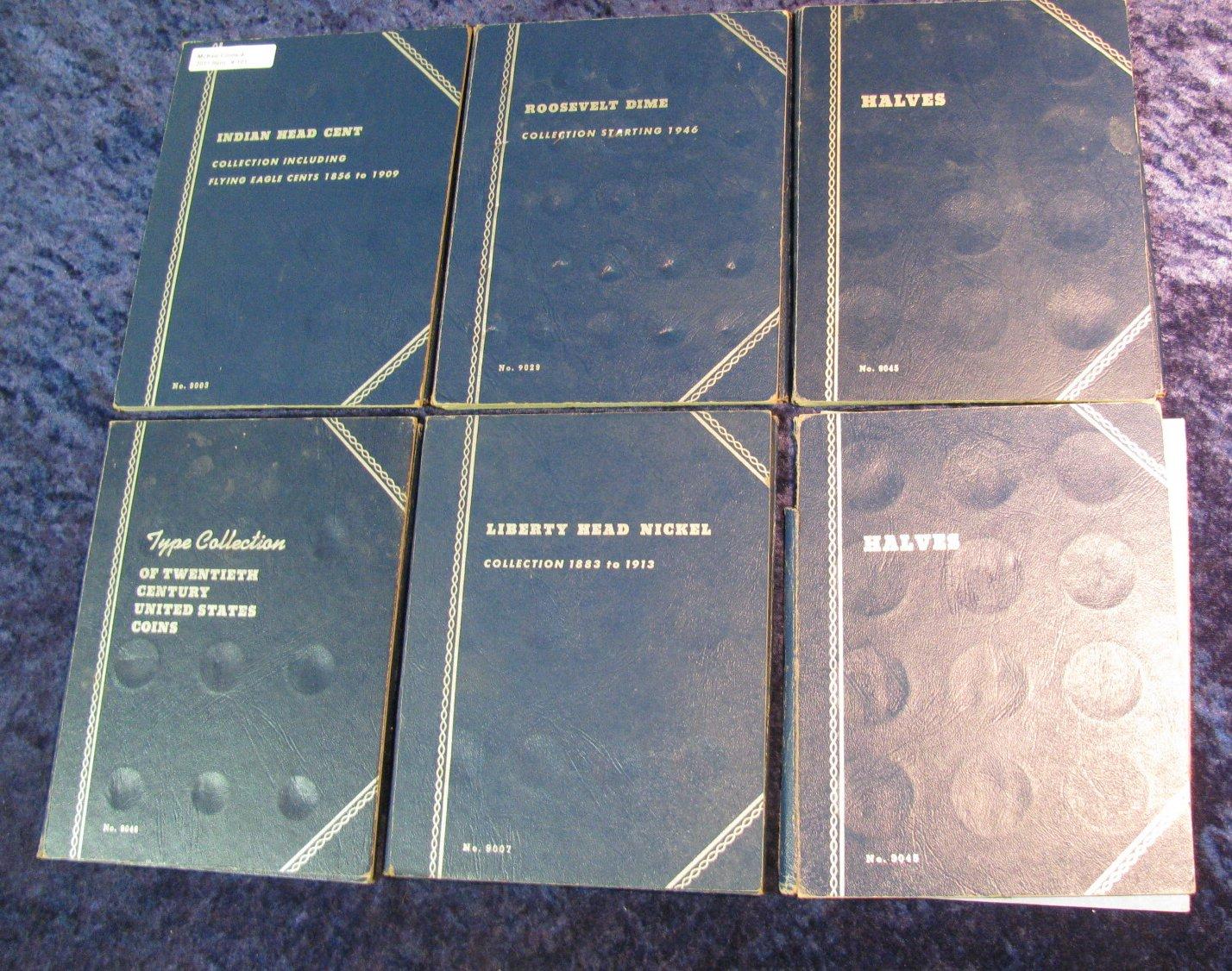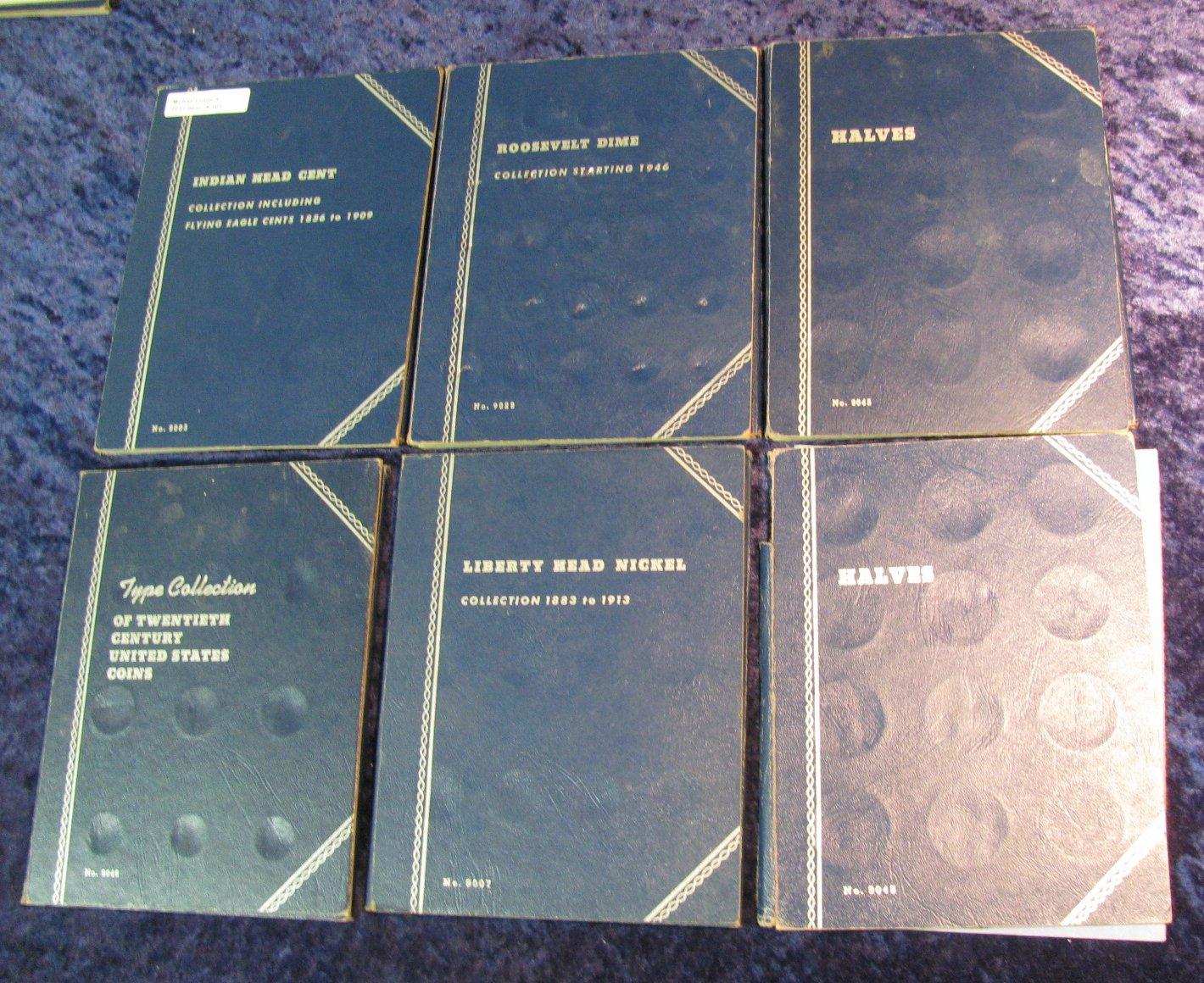 101. Group of used Whitman folders for Liberty Nickels, Halves, Twentieth Century Type Set; Roosevelt Dimes; & Indian Cents. (5 books).