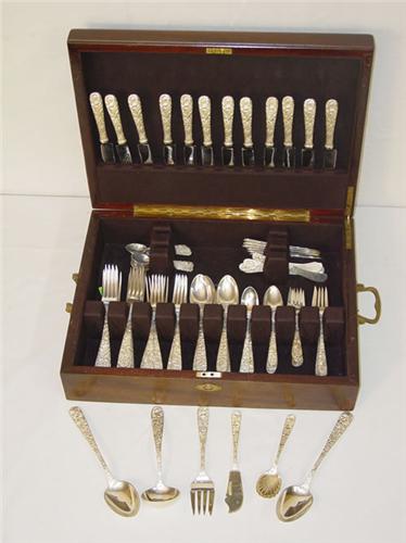 101 PC. KIRK & SON STERLING FLATWARE SERVICE (SEVERAL KIRK REPOUSSE PATTERNS) INCL. (12) KNIVES, DINNER & LUNCH FORKS, TABLE SPOONS & DESSERT FORKS, (13) TEASPOONS, (10) BUTTERS, (11) DEMI-SPOONS, (7) SERVING PCS.-142 TROY OZ. - SMALL DENTS & WEAR