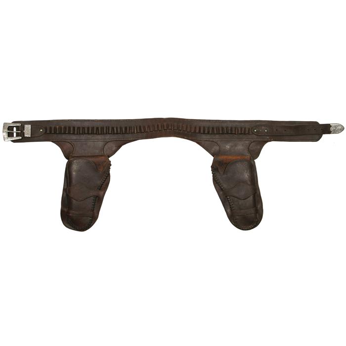 Double Gun Holster and Gun Belt. Belonged to 101 Ranch star Jack Case. 42" belt marked 101 Ranch. Buckle set marked Edward H. Bohlin. Buckle is 1 1/2". (est $2,000-3,000)