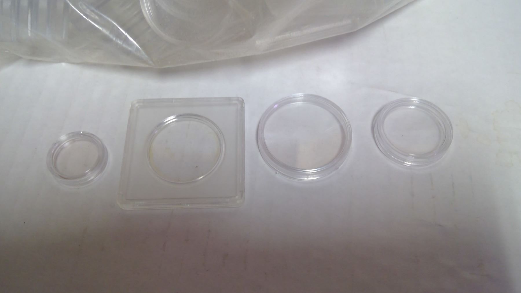 101 used hard plastic holders in assorted coin sizes, mostly from Proof Sets.