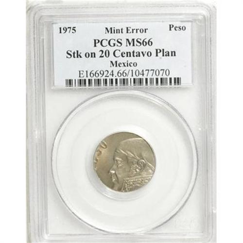 <B>1975 Mexico Peso--Struck on 20 Centavo Planchet--MS66 PCGS.</B></I><BR><BR><b>Shipping:</b> Coins & Currency (<a target="_blank" href="http://www.heritageauctions.com/common/shipping.php">view shipping information</a>)
