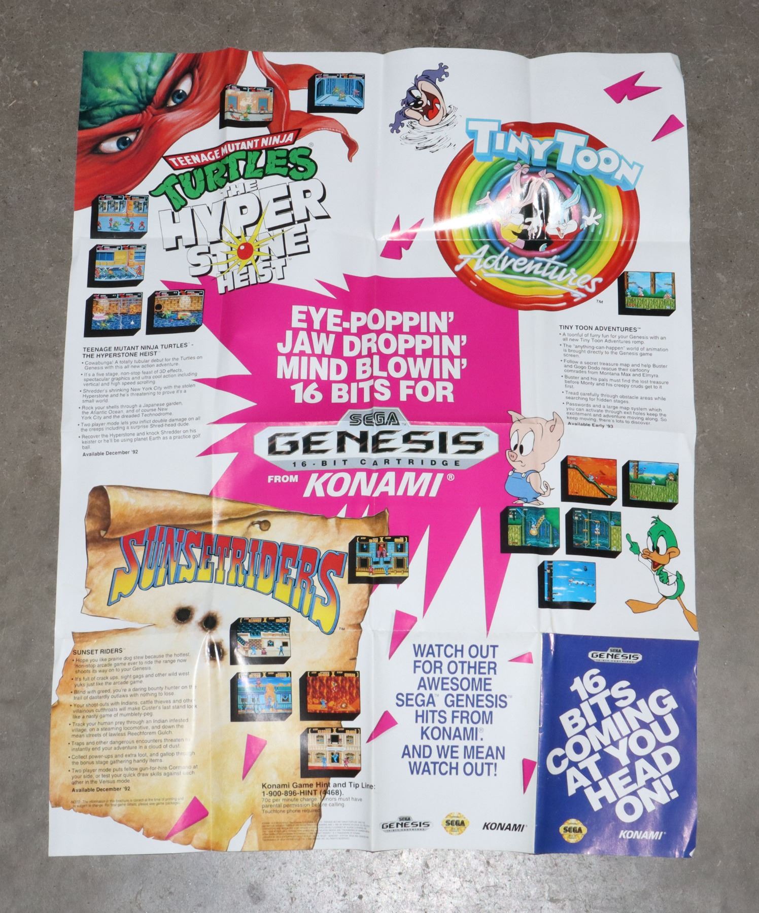 SEGA GENESIS ADVERTISING TMNT TEENAGE MUTANT NINJA TURTLES TINY TOON ADVENTURES SUNSETRIDERS
