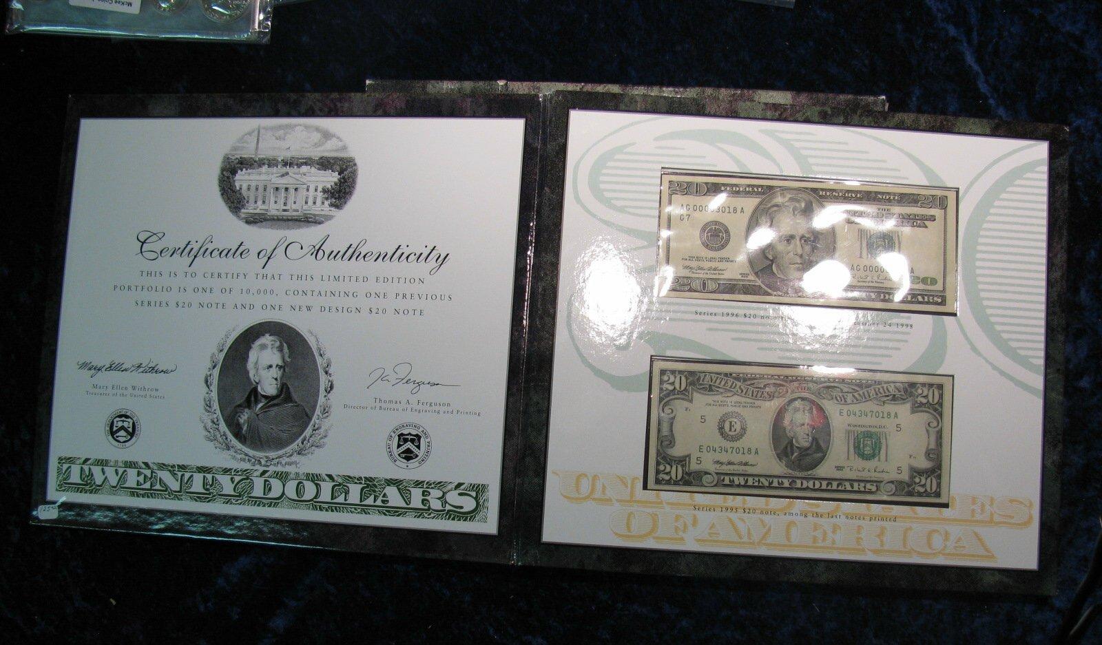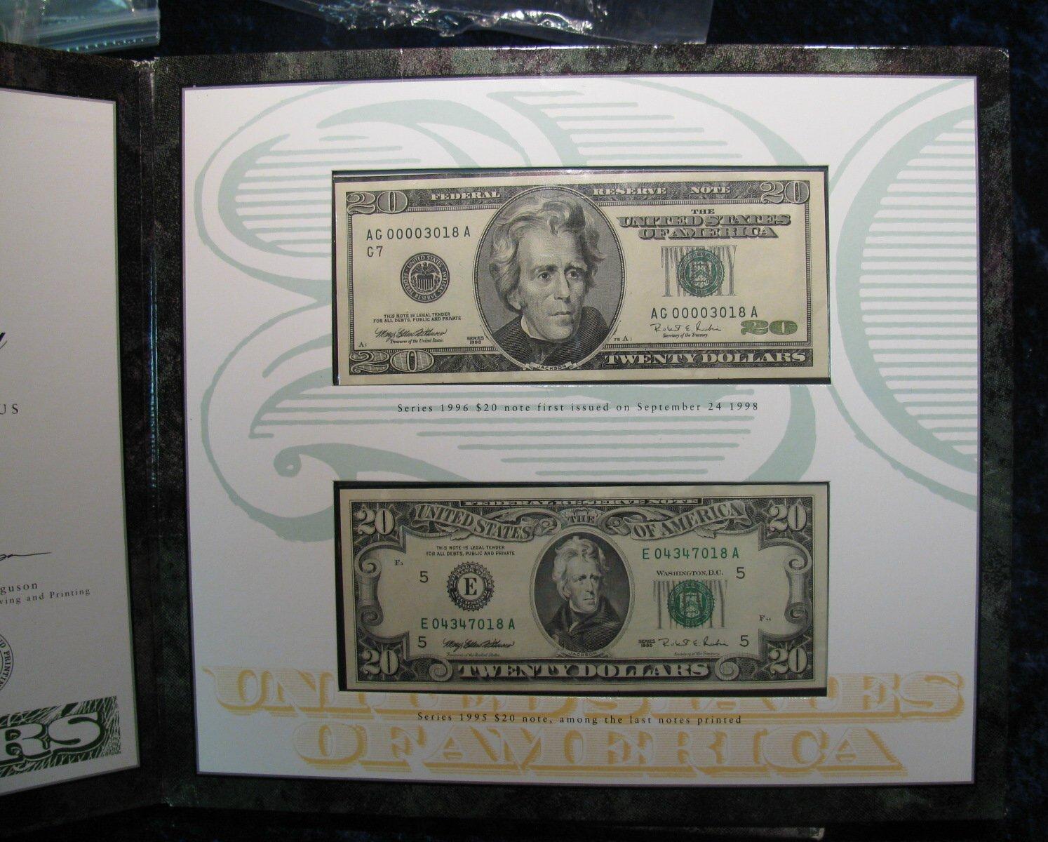 1012. Series 1995 & 1996 (2) $20. Notes Changing from the old to the new Design. Portfolio Crisp Unc.