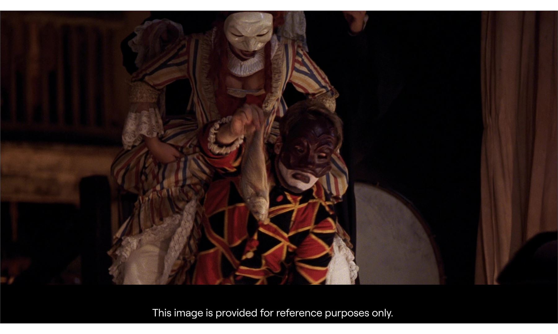 INTERVIEW WITH THE VAMPIRE (1994) - Theater Mask - A theater mask from Neil Jordan's Interview with a Vampire. Lestat (Tom Cruise) and Louis (Brad Pitt) feasted on a woman during a theater performance where a man in a mask appeared from a woman's skirts with a fish.