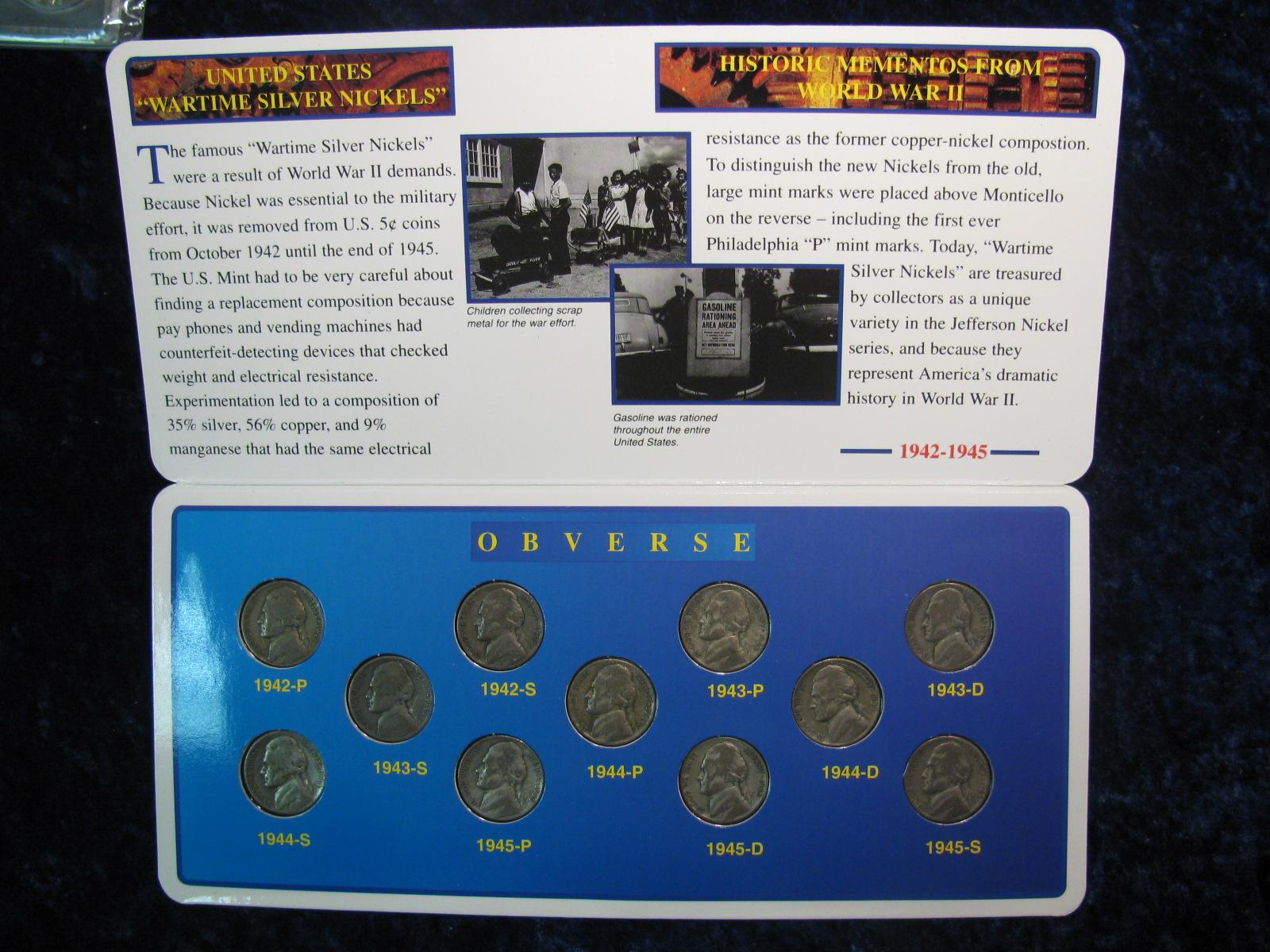 1013. 11-Coin Set 1942-45 Silver War Nickels. Circulated.