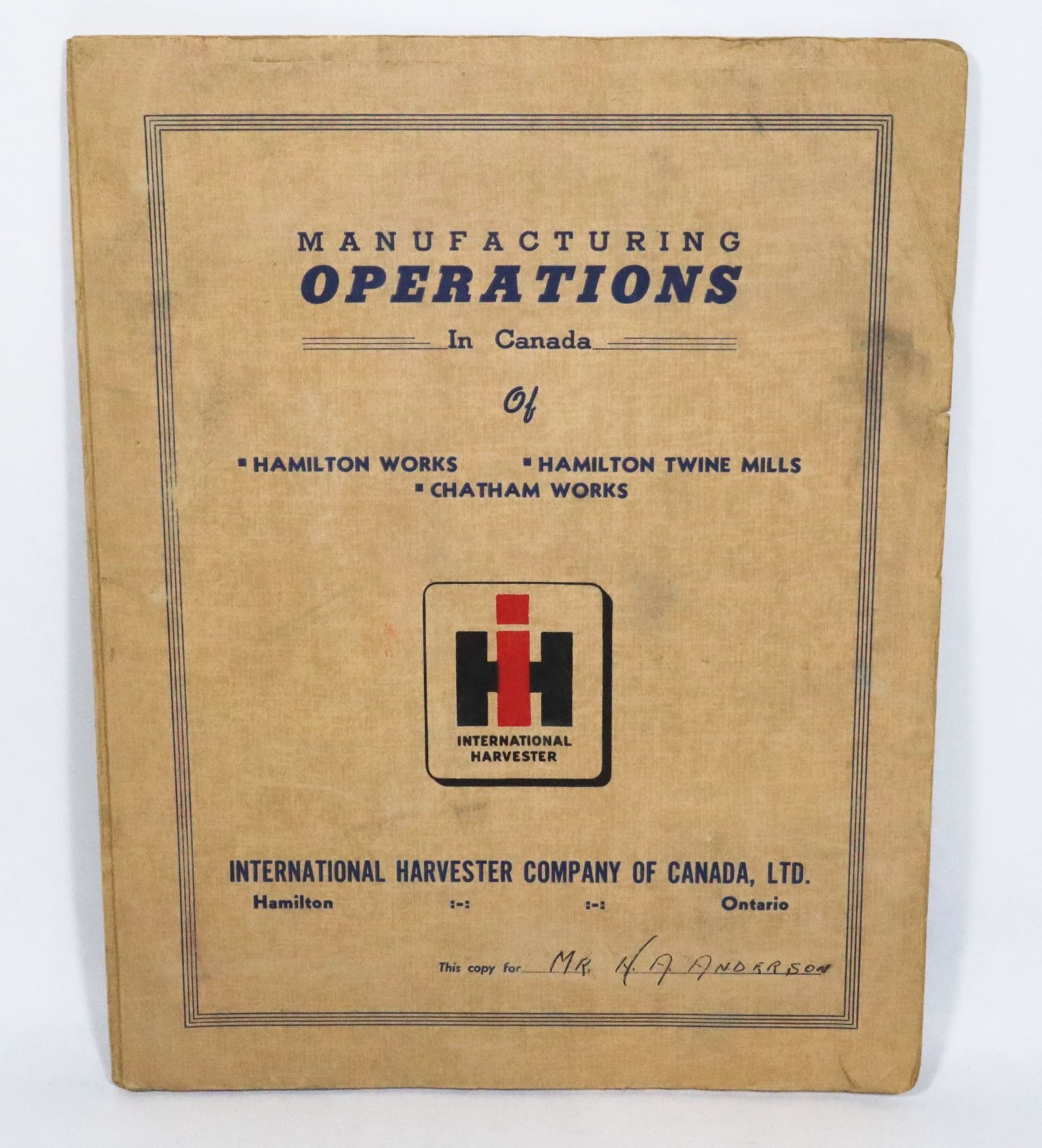 OPERATIONS OF CANADA REFERENCE HAMILTON WORKS RARE 1940'S