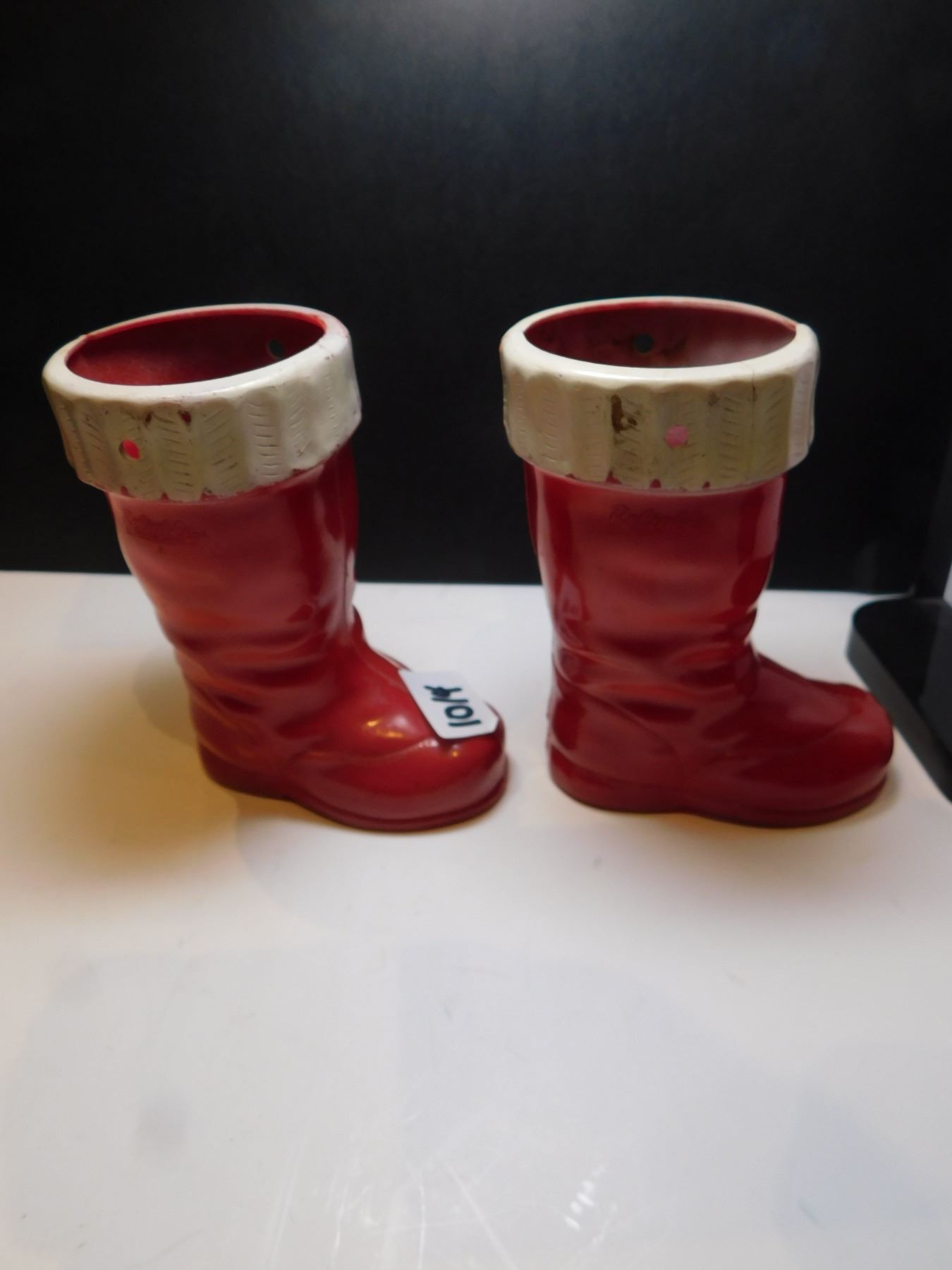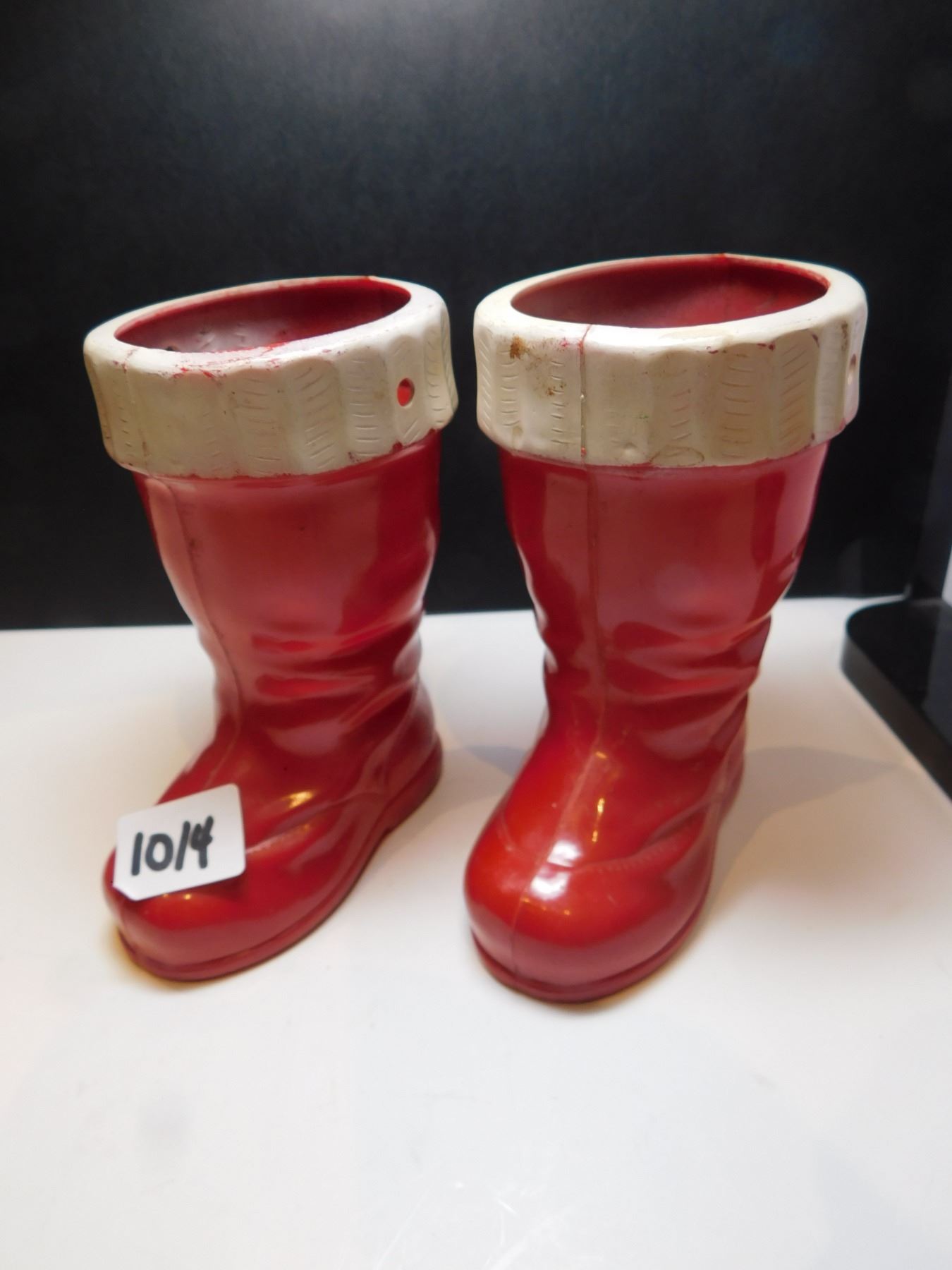 1014. VINTAGE PLASTIC SANTA BOOT ORNAMENTS