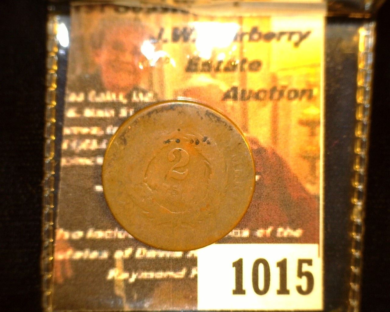 1015. 1867? U.S. Two Cent Piece, c/s "P.J. Clark".