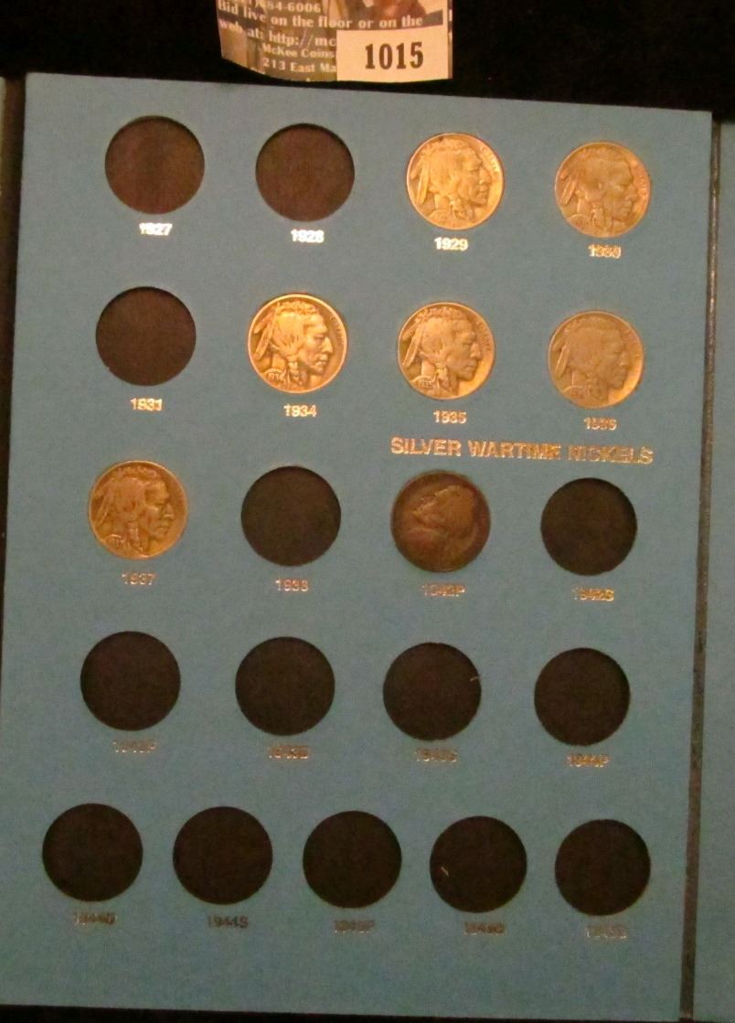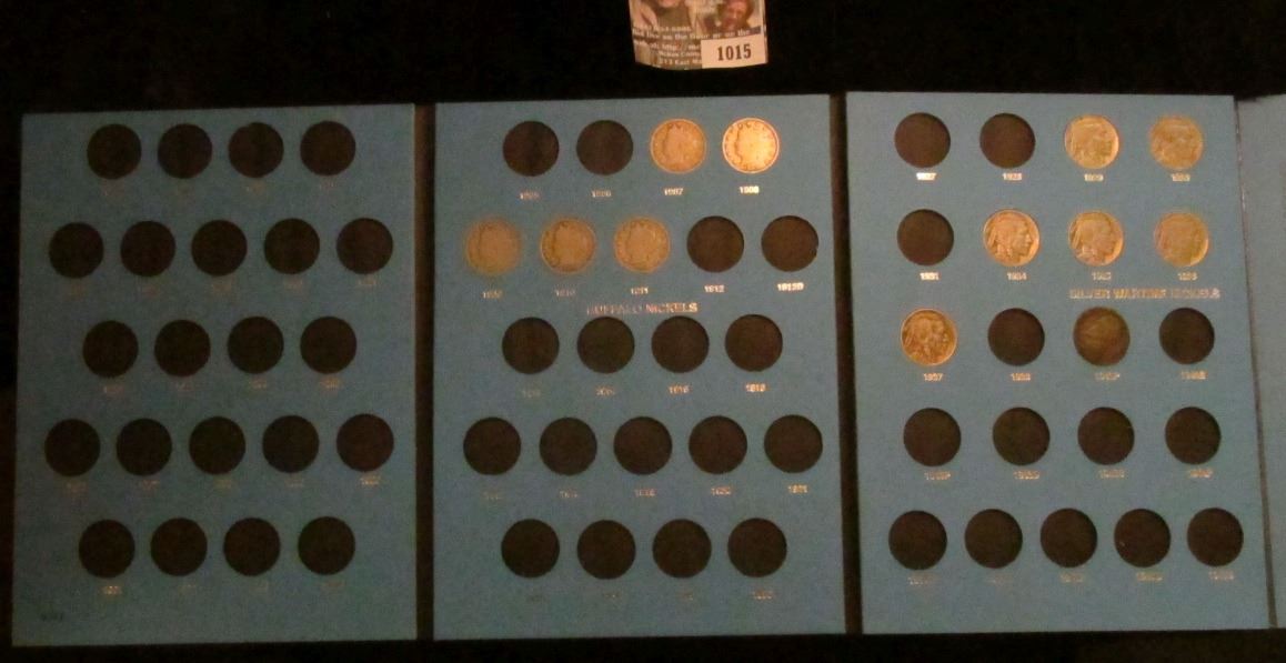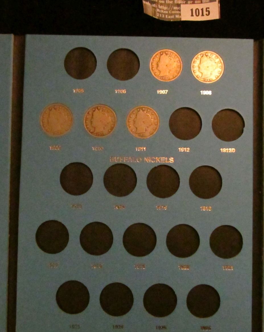 1015 _ Nickel Whitman Coin folder with 1907, 08, 09, 10, & 11 Liberty Nickels, (6) different Buffalo