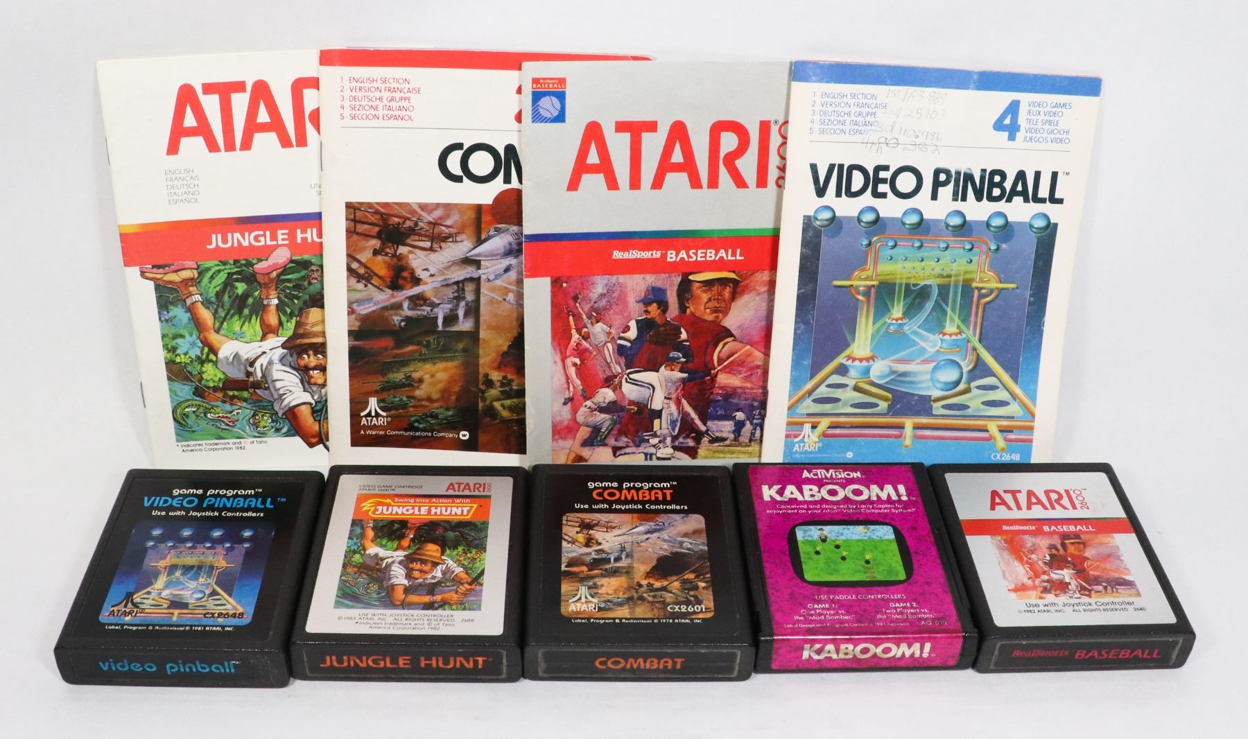 JUNGLE HUNT BASEBALL VIDEO PINBALL KABOOM VINTAGE ATARI 2600 GAMES W/ MANUALS LOT OF 5