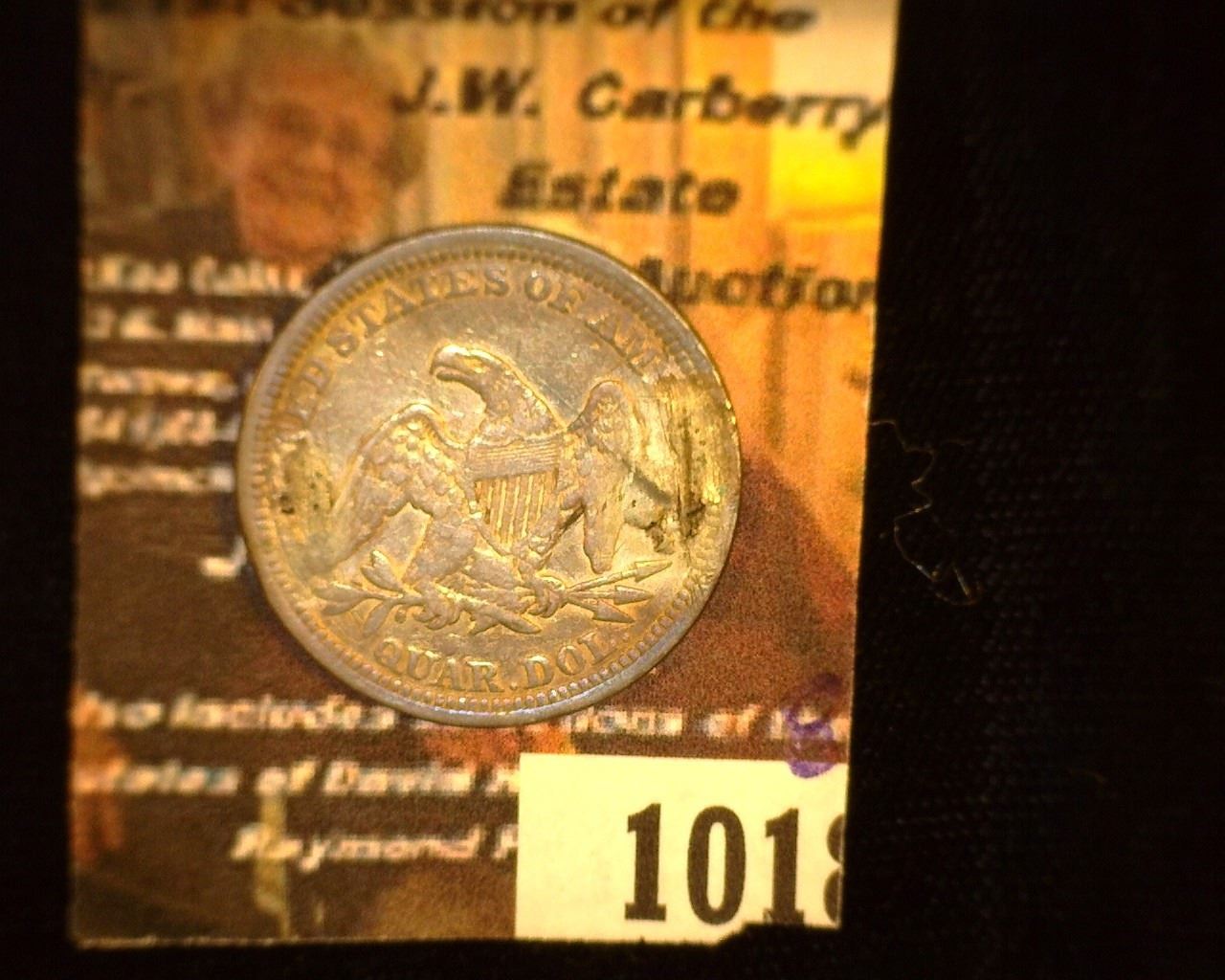 1018. Engraved Store Card U.S. Seated Liberty Quarter "Agent/Miss St. Clair's/Lecture", atta