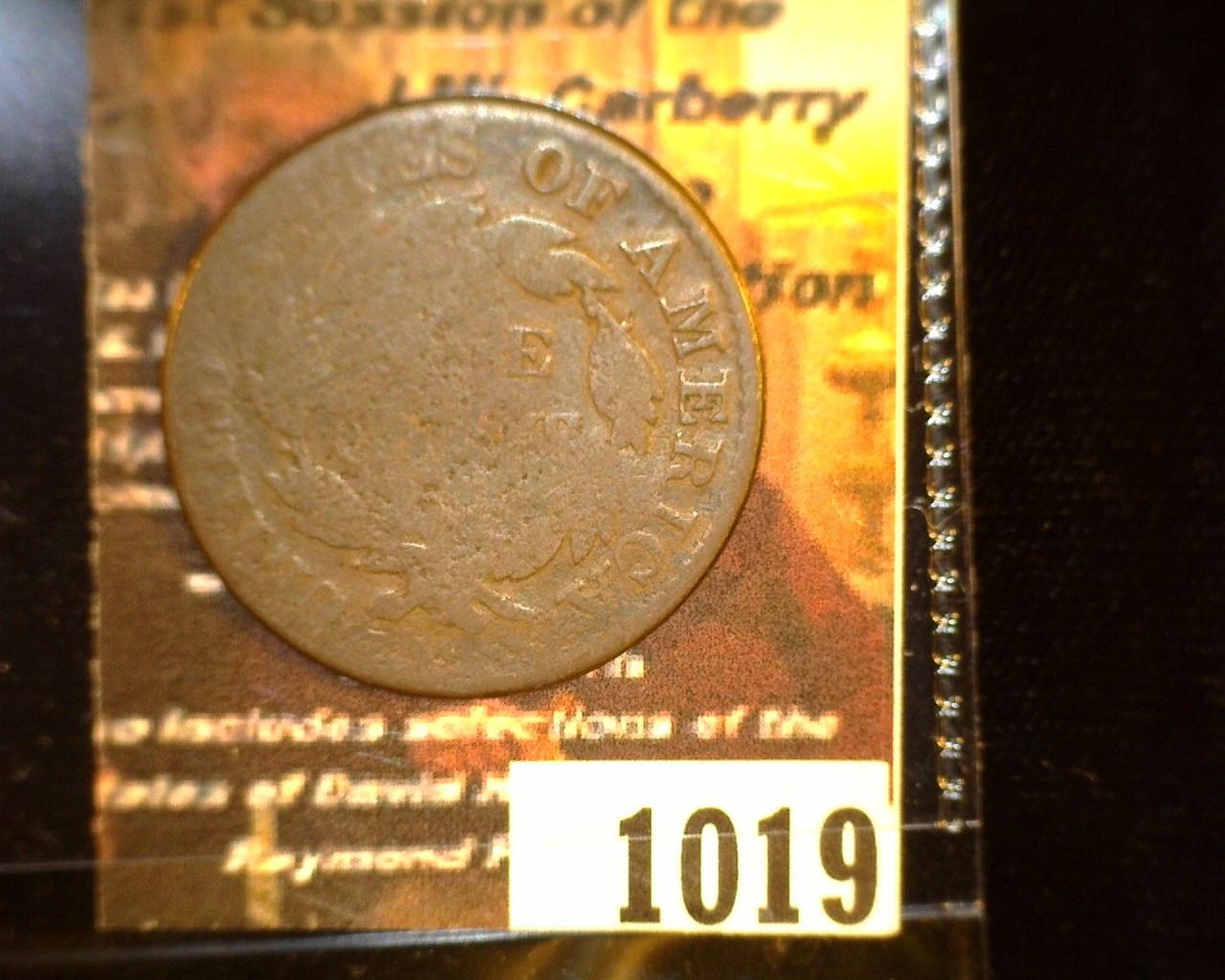 1019. 1825 U.S. Large Cent c/s of "M" in shield over "S" in shield, very rare.