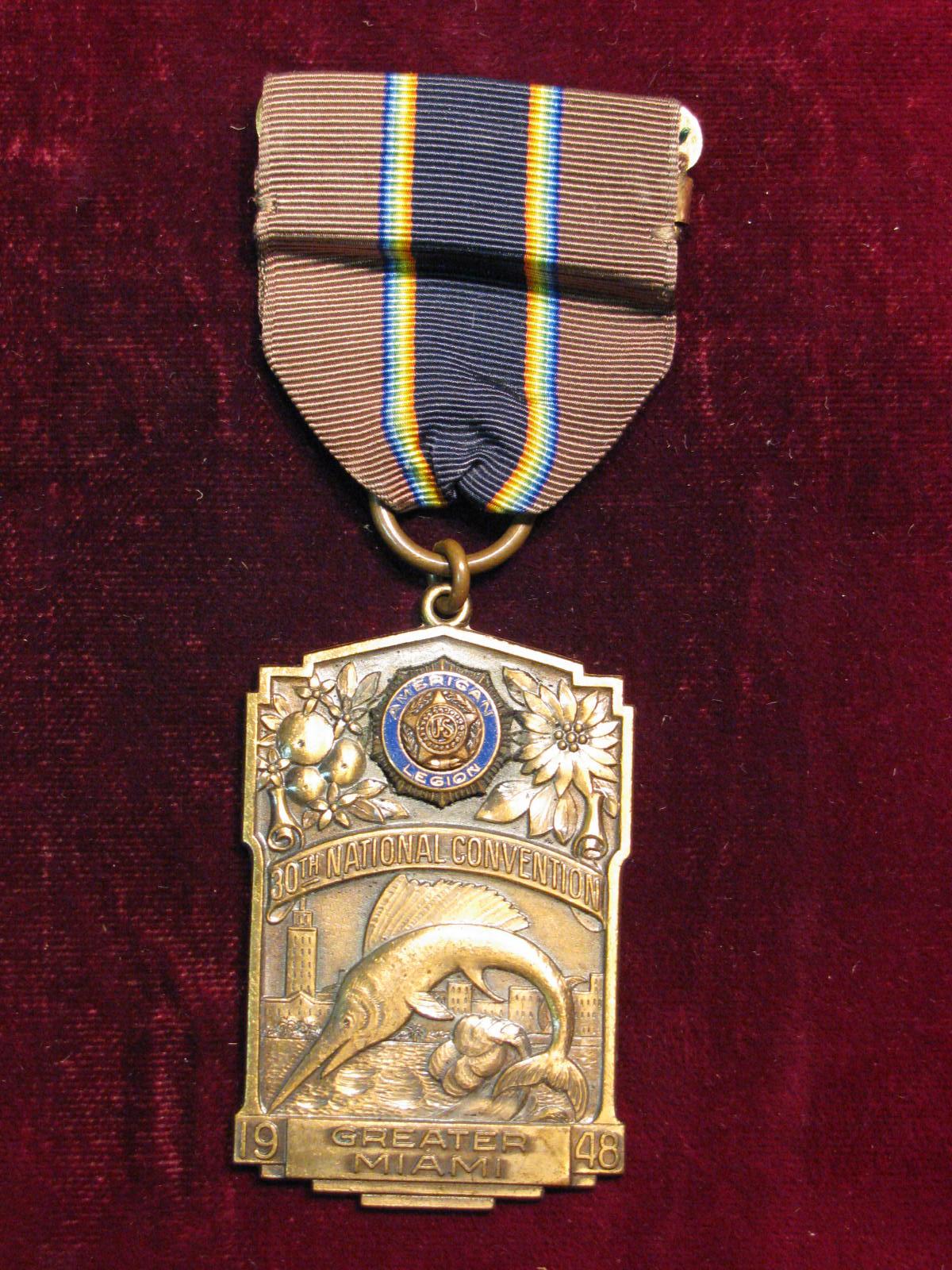 1019. Am. Legion, Miami 30th National Convention. Hanging Badge with Ribbon.
