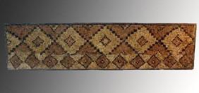 From Roman Syria, ca. a300-500 CE. This is a large rectangular section of a Roman mosaic floor with a progressive geometric pattern. The small, multi-colored tesserae are all original and the mosaic section is set into a sturdy iron bordered concrete base. This beautiful example features the tones and colors that interior decorators so love to work with. It can be used as a console table, set into a wall or used in a floor. **A strong, custom made, black angle-iron stand is also available separately should the buyer wish it. The stand is 36”H, 50”L, 16” deep, and has a lower shelf on which objects could be displayed** Mosaic itself measures 72-1/2”L x 17-3/4"W.