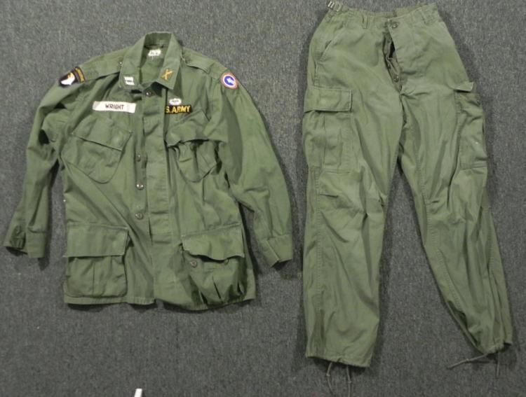 101ST AIRBORNE COMBAT TROPICAL UNIFORM JACKET & PANTS-PARATROOPER PATCH * ALSO NAMED--SMALL SIZE *