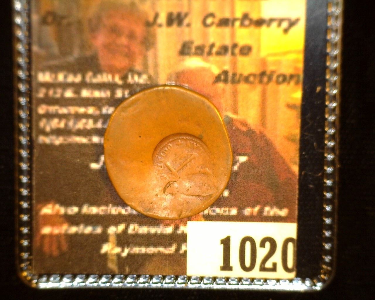 1020. 1850-1860 Mexico Copper Coin, M33B, 'Doc' says the c/s on this coin was for 'Admit to Mazatak'. He thought it very rare and had written on holder "In Book".