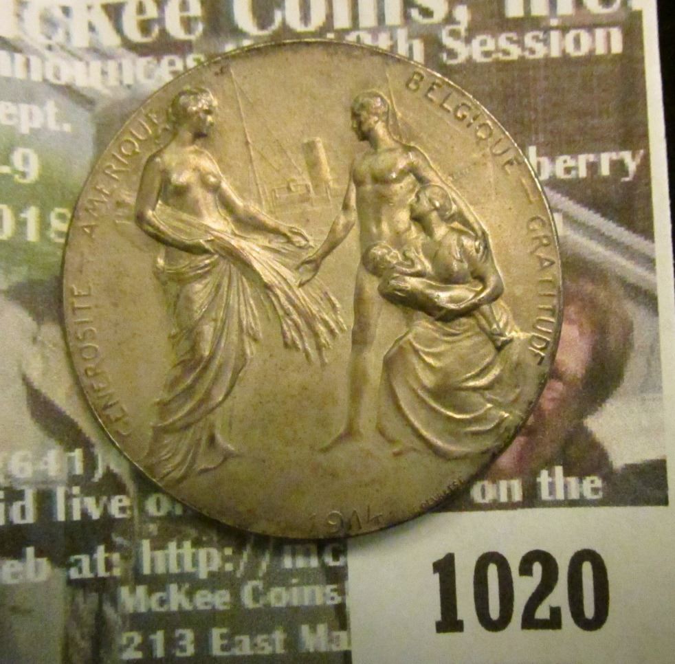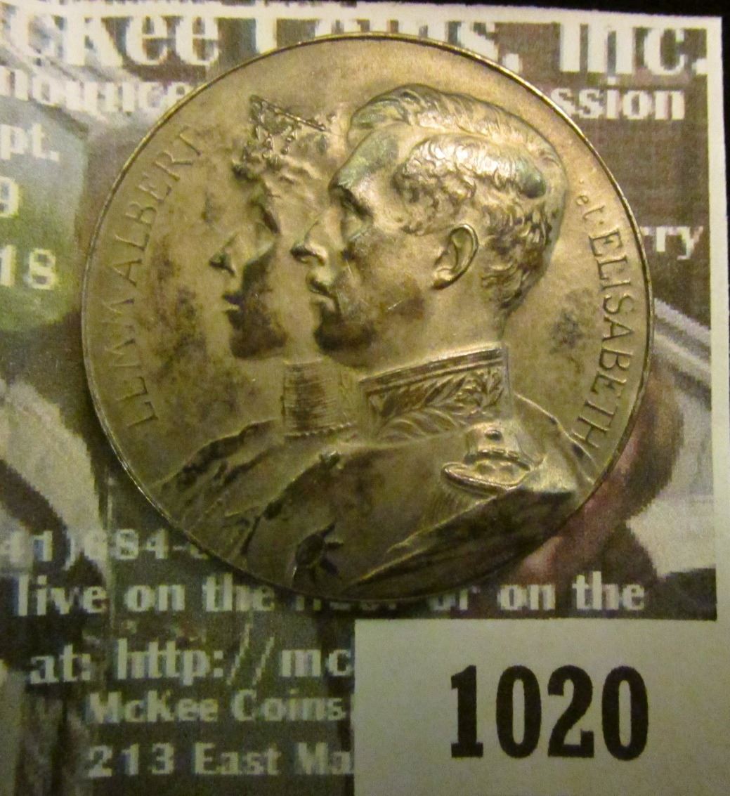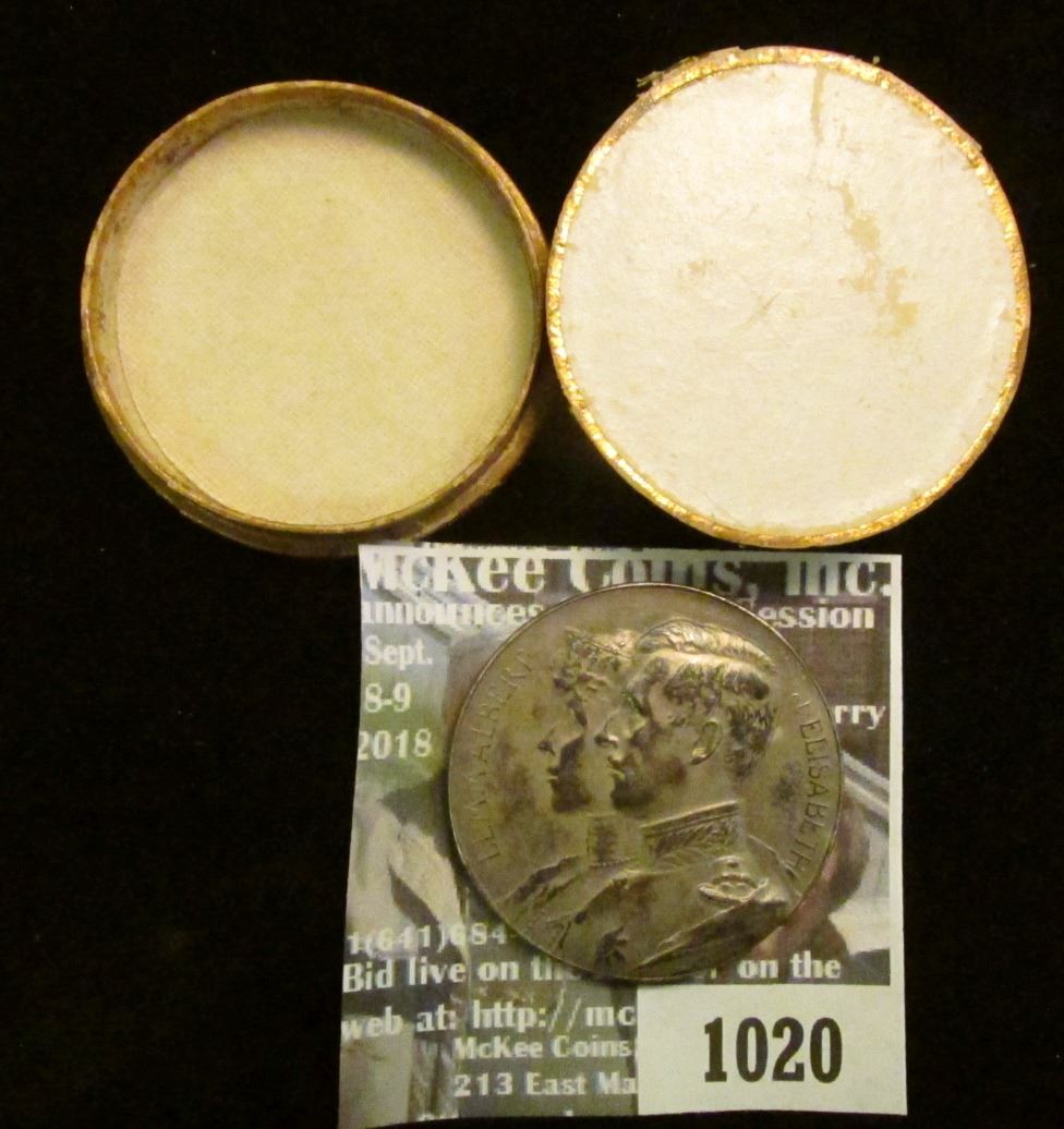 1914 Albert/ Elizabeth Belgium Relief Medal. Excellent Art work. Appears to be Silver. 35mm. Uncirculated. In original government issued round box.