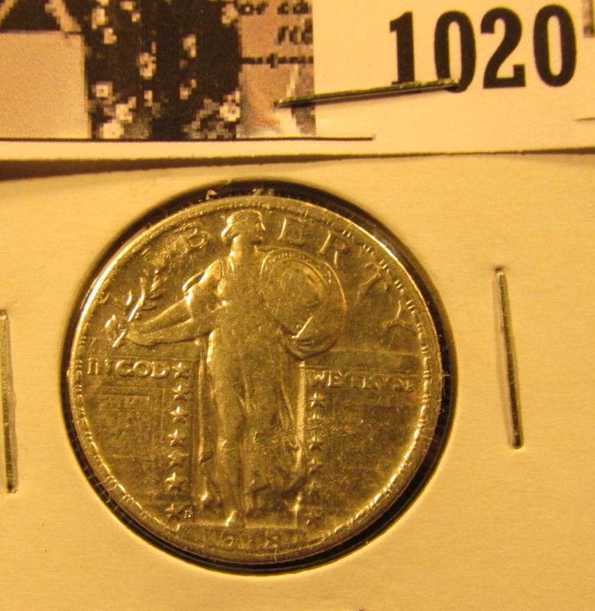 1020 . 1918 D Standing Liberty Quarter,. VF30.