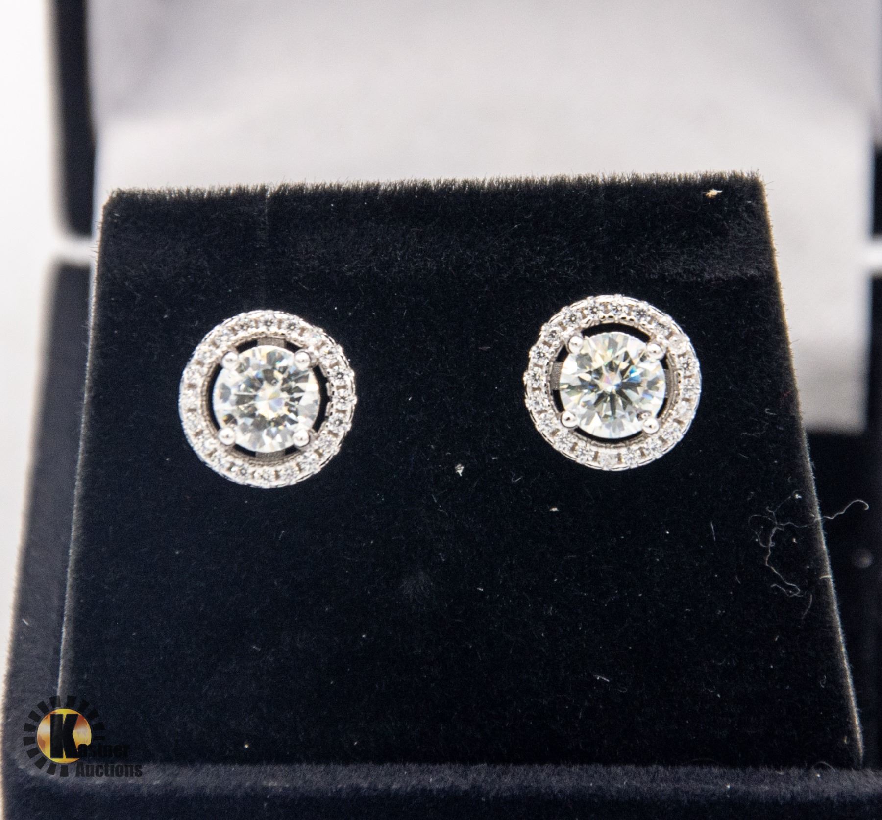 BRILLIANT CUT MOISSANITE STONES VVS D COLOR SET IN 4 CLAW BASKET HEAD SET IN 925 SILVER EARRINGS RETAIL VALUE $1,150.00