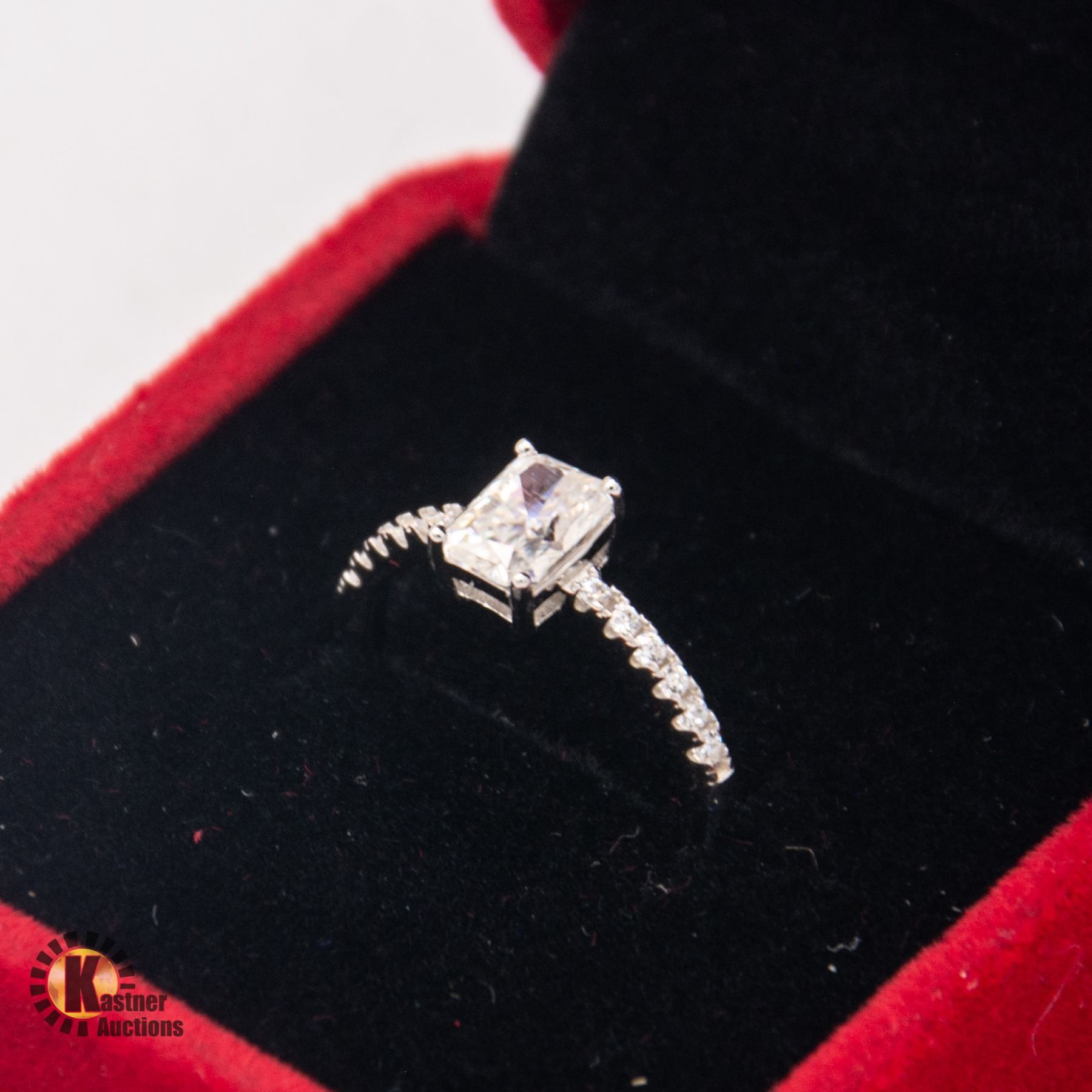 MOISSANITE STONE VVS D COLOR SET IN CENTER OF 925 SILVER RING SIZE 7 **ALL ITEMS MUST BE REMOVED BY 5PM SATURDAY, NOVEMBER 23RD 2024. ALL REMAINING ITEMS WILL BE SUBJECT TO A $6.00 PER DAY STORAGE CHARGE. ANY ITEMS REMAINING AFTER MONDAY, DECEMBER 9TH 2024 WILL BE CONSIDERED FORFEITED. NO REFUNDS WILL BE ISSUED FOR FORFEITED ITEMS. TO SCHEDULE A PICK UP APPOINTMENT CLICK HERE
