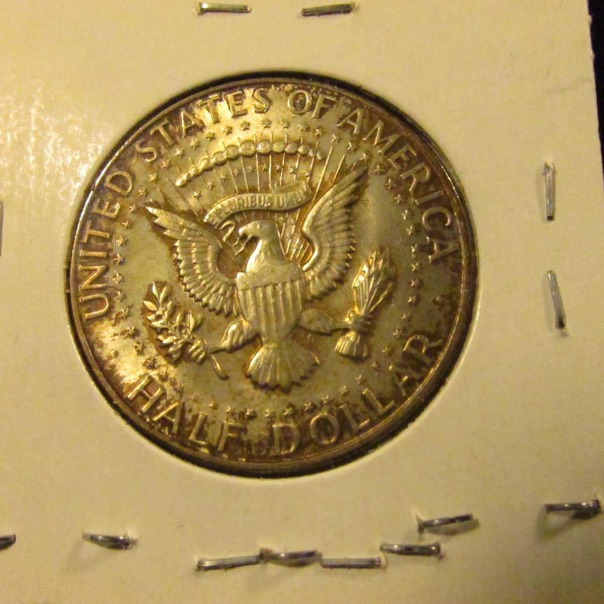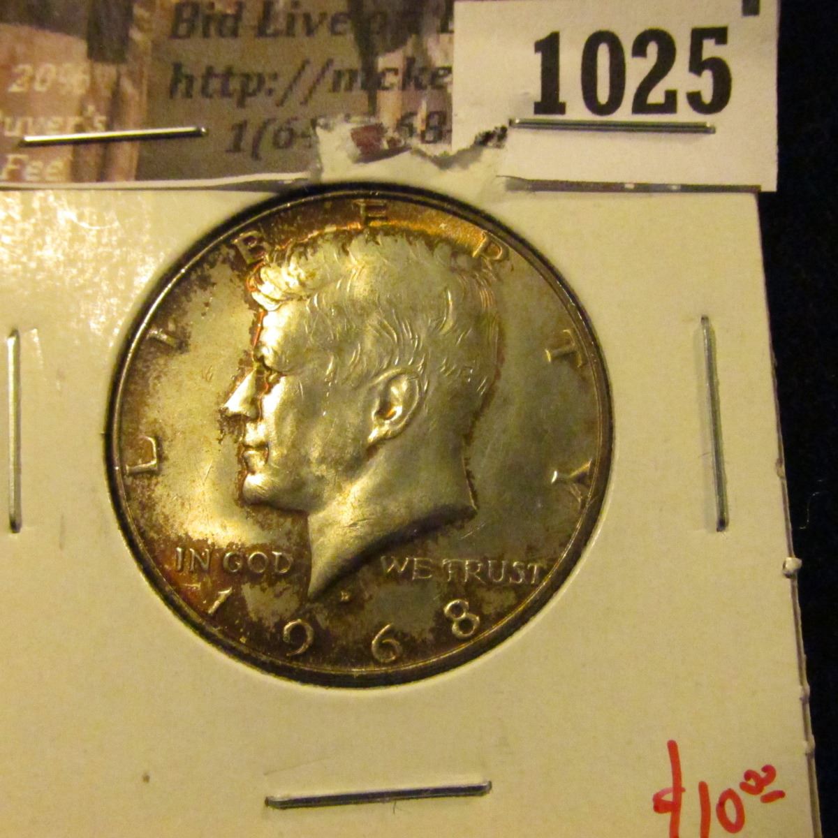 1025 . 1968-D Kennedy Half Dollar, UNC toned, value $10