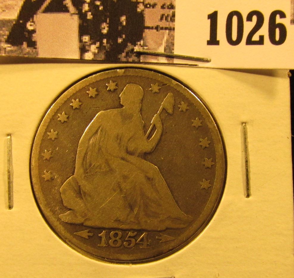 1026 . 1854 Arrows at Date U.S. Seated Liberty Half Dollar, Good.