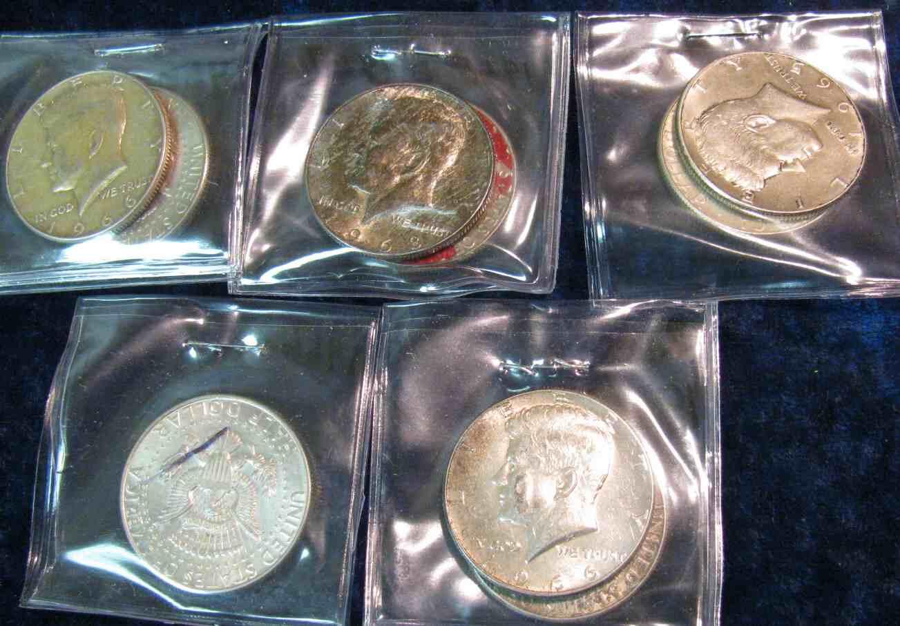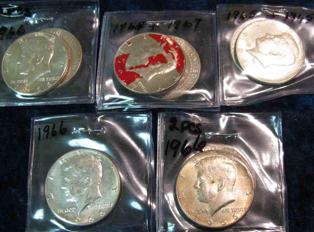 1026. (2) 1965, (5) 66, (1) 67 & (1) 68D Silver Kennedy Half Dollars.EF-Unc.