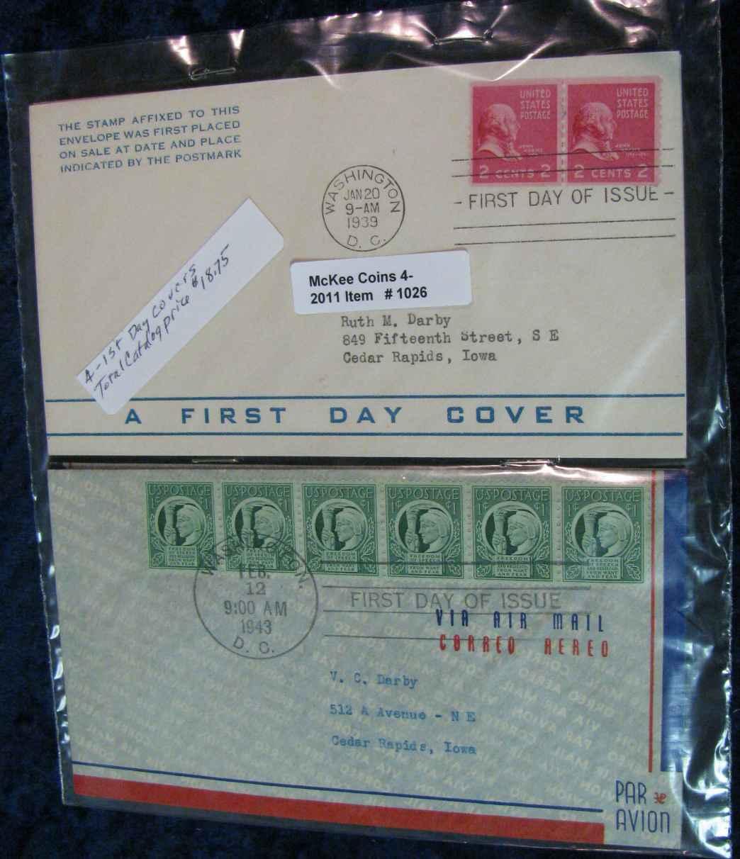 1026. (4) First Day Covers 1930's & 40's. Catalog Value $18.75