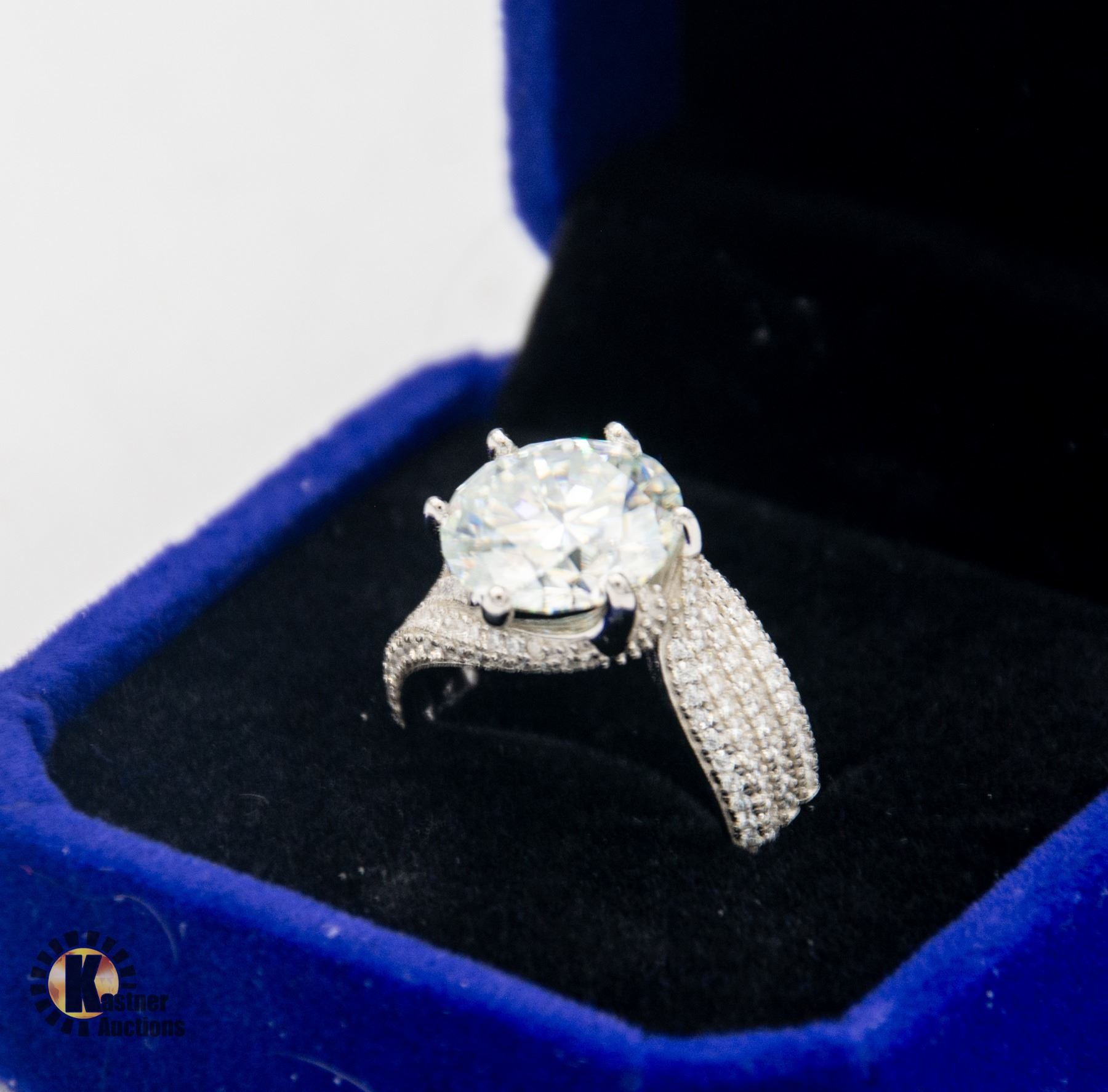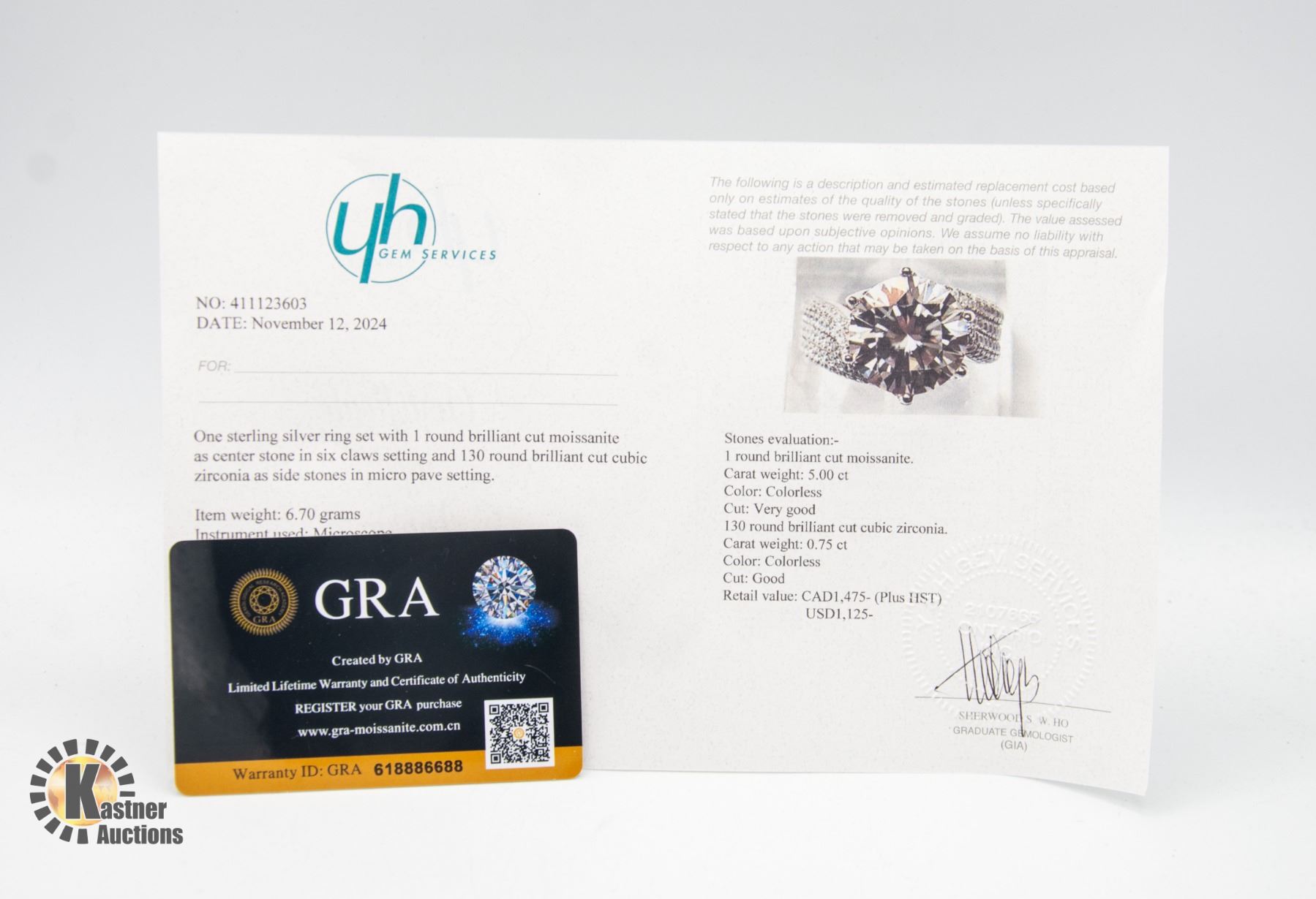 MOISSANITE STONE VVS D COLOR SET WITH 130 ROUND BRILLIANT CUT CZ'S SET IN 925 SILVER RING SIZE 6 RETAIL VALUE $1,475.00