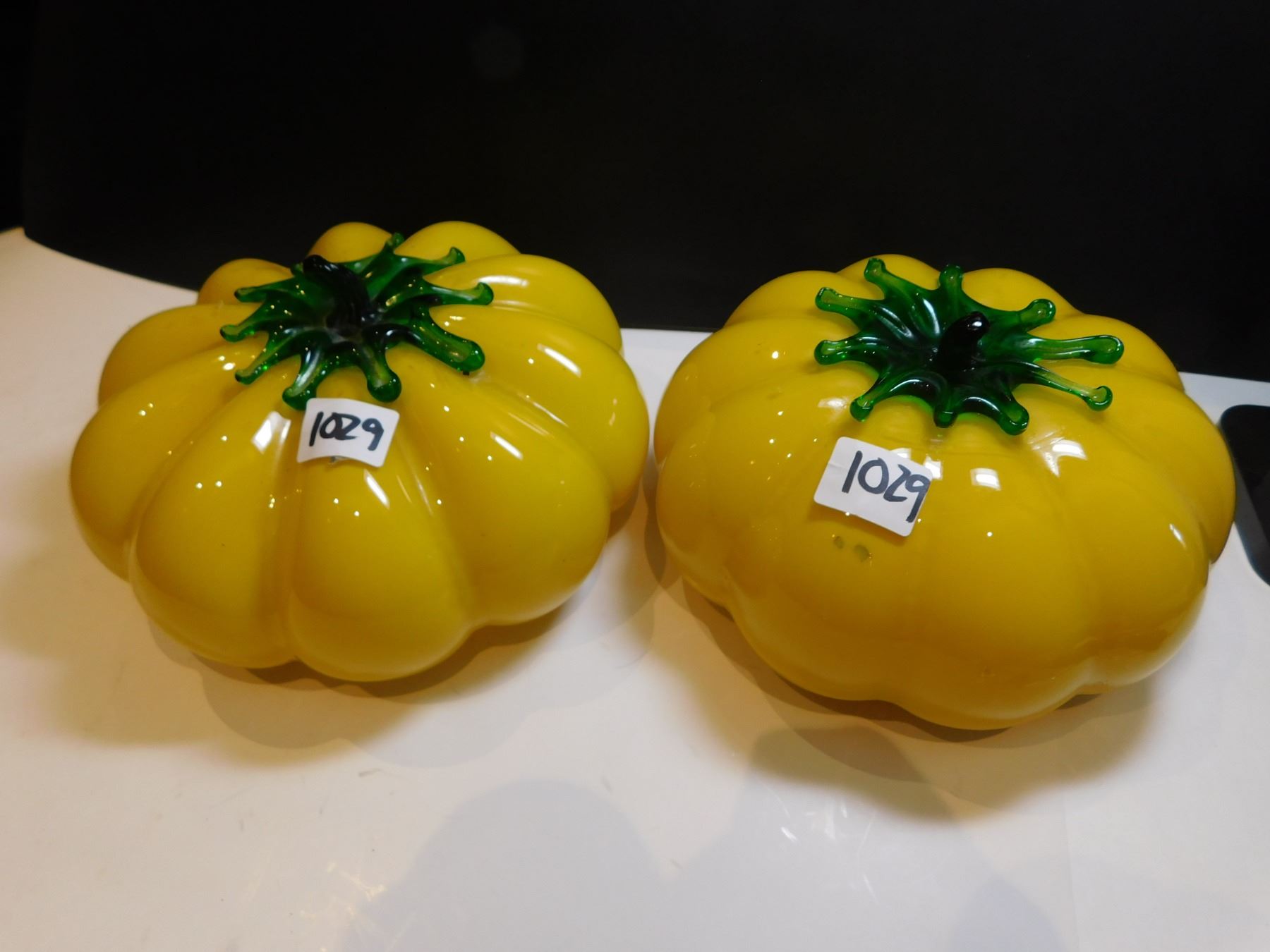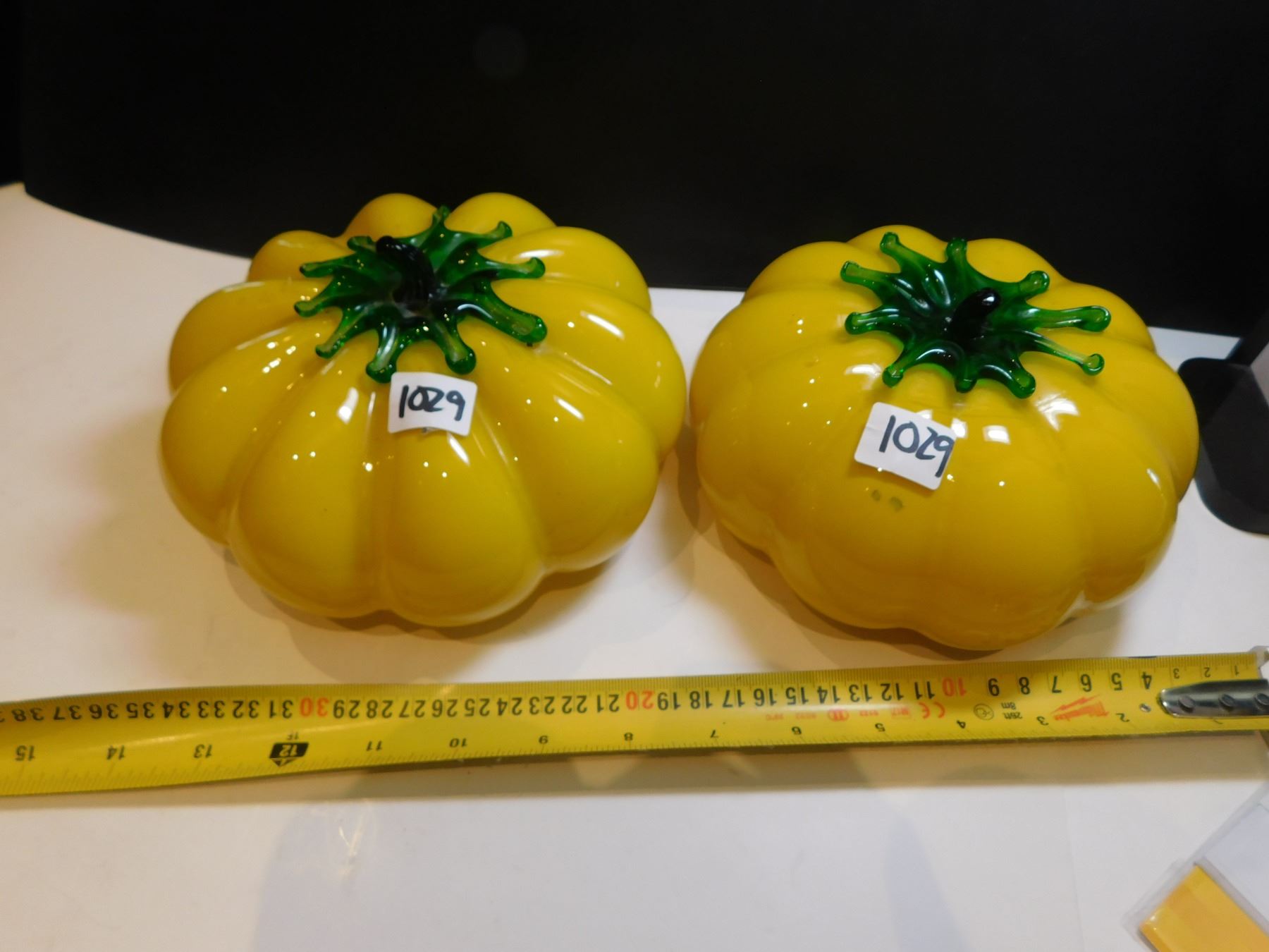 1029. 2-SQUASH ART GLASS ORNAMENTS