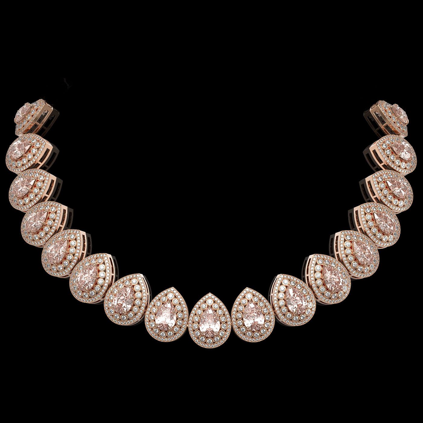 REF-4551W3H - SKU: 43251 ---- 103.22 ctw Morganite & Diamond Victorian Necklace 14K Rose Gold