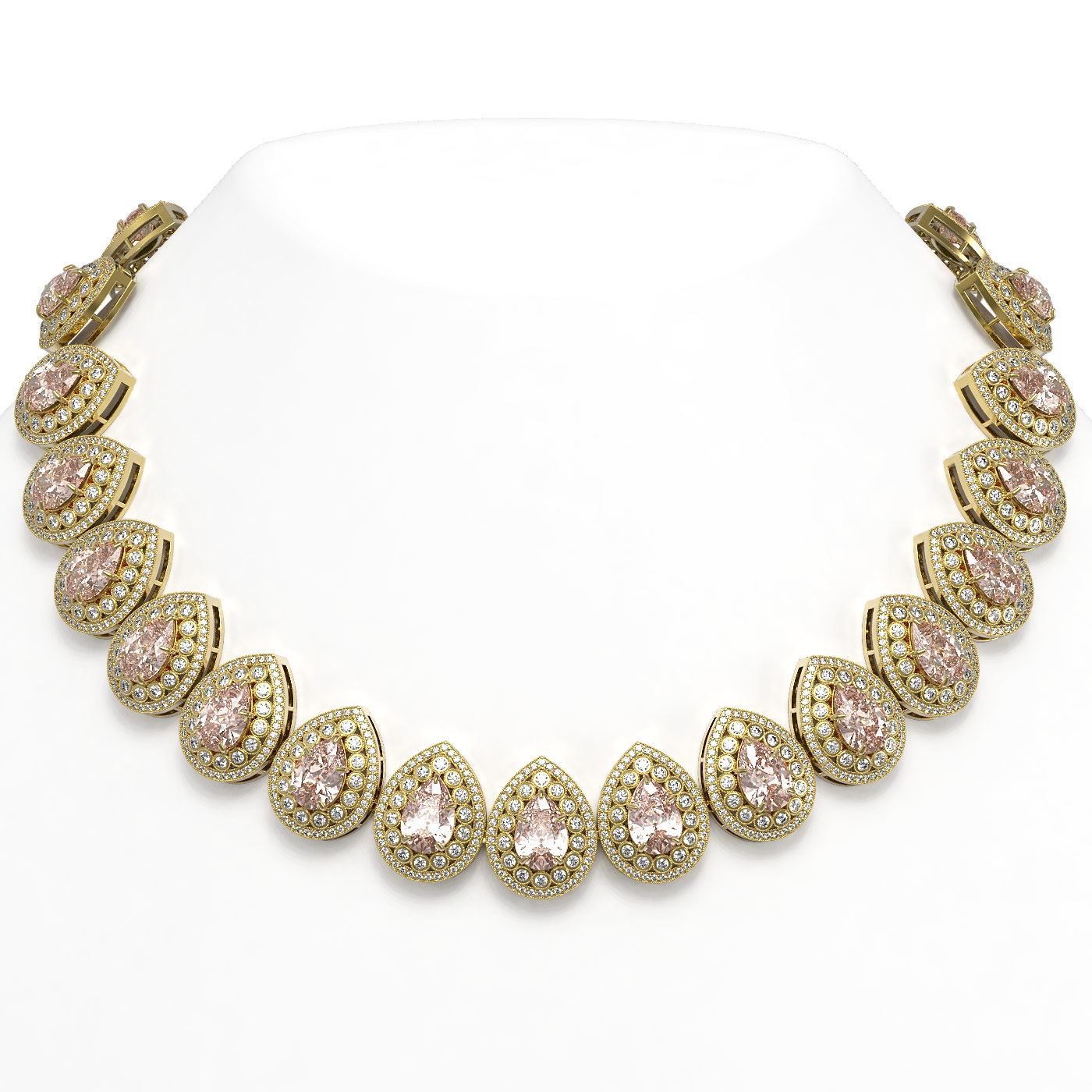 REF-4551F3M - SKU: 43252 ---- 103.22 ctw Morganite & Diamond Victorian Necklace 14K Yellow Gold